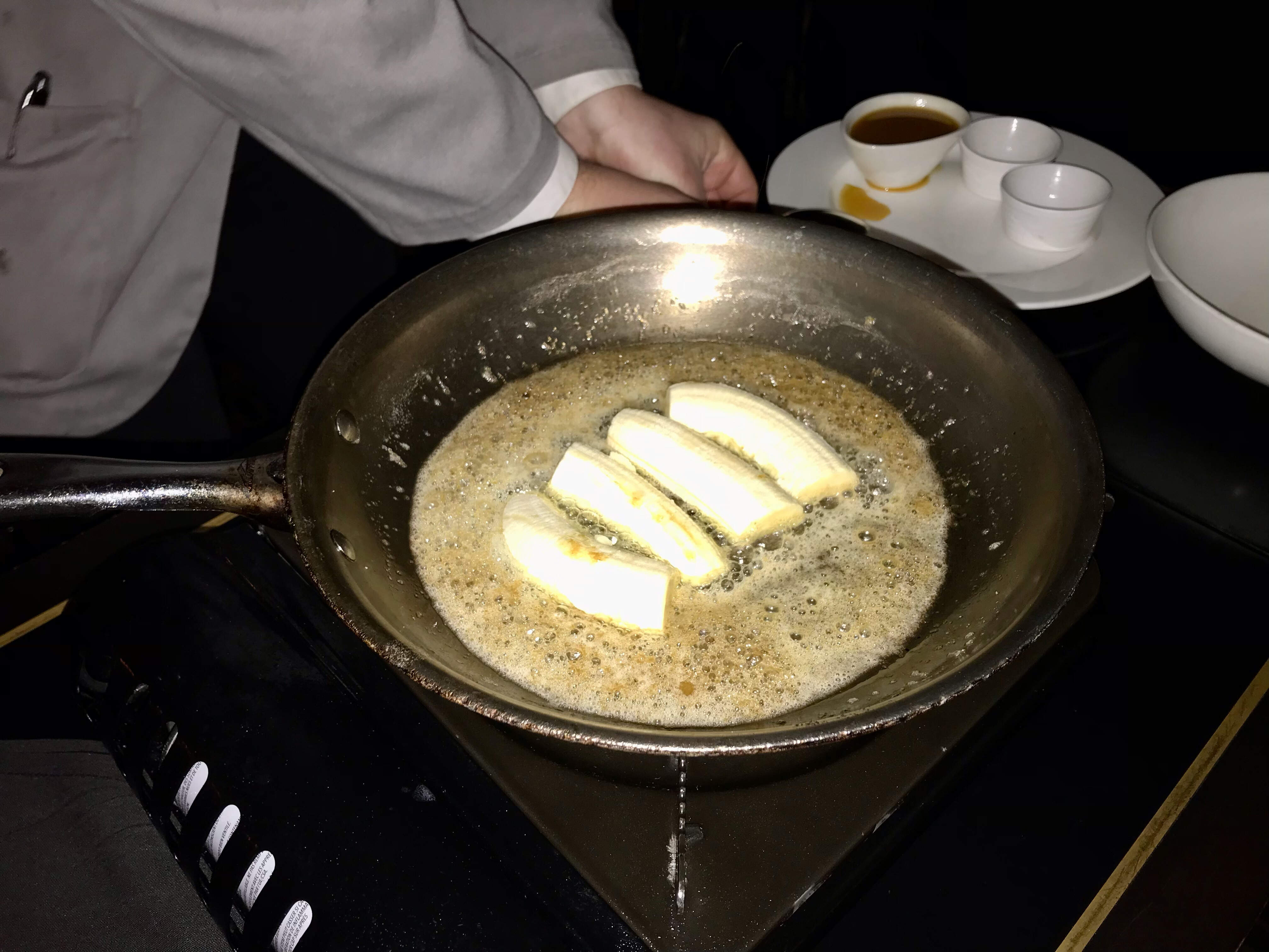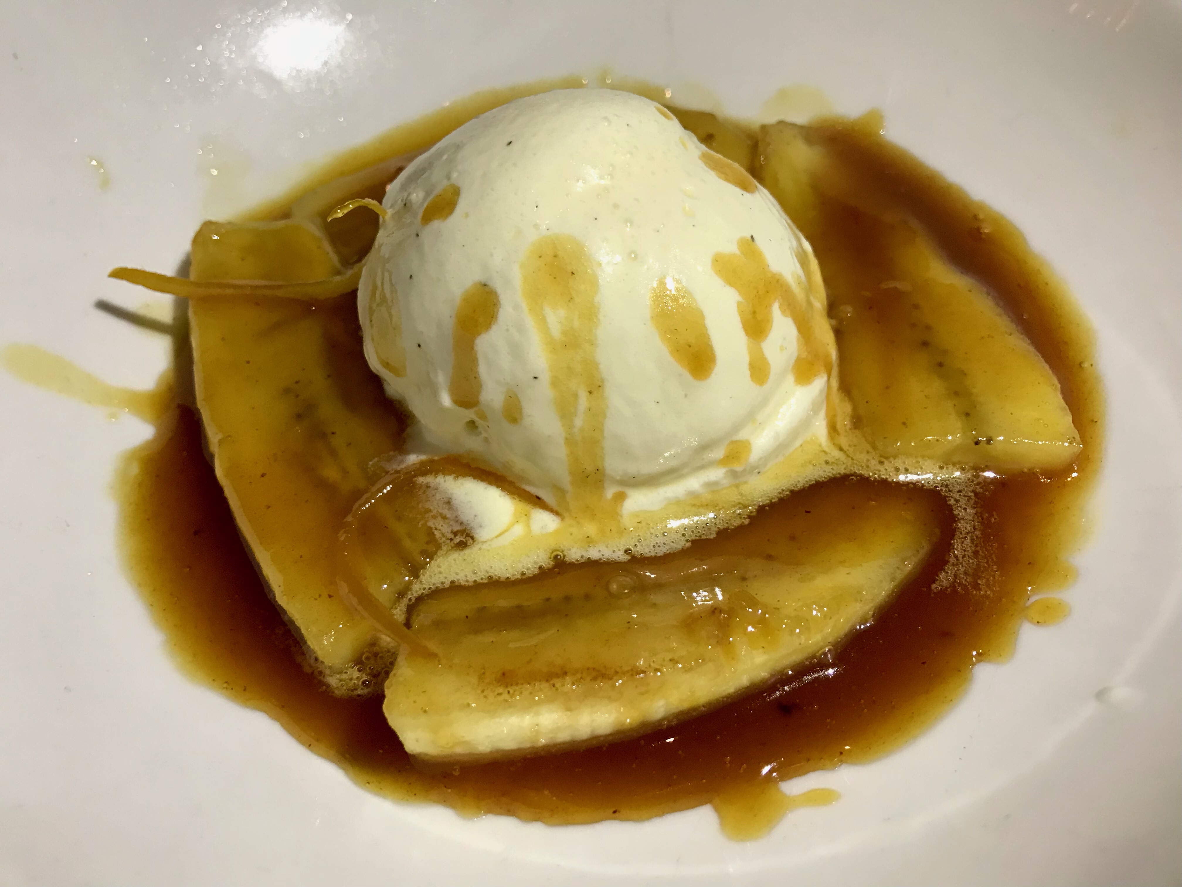 For dessert we had the Bananas Foster, with the bananas sauteed tableside with butter, brown sugar and fresh orange juice, then flambeed with dark rum and served with vanilla ice cream. I felt the bananas wre a little on the green side, but this was exactly the way my wife likes them.