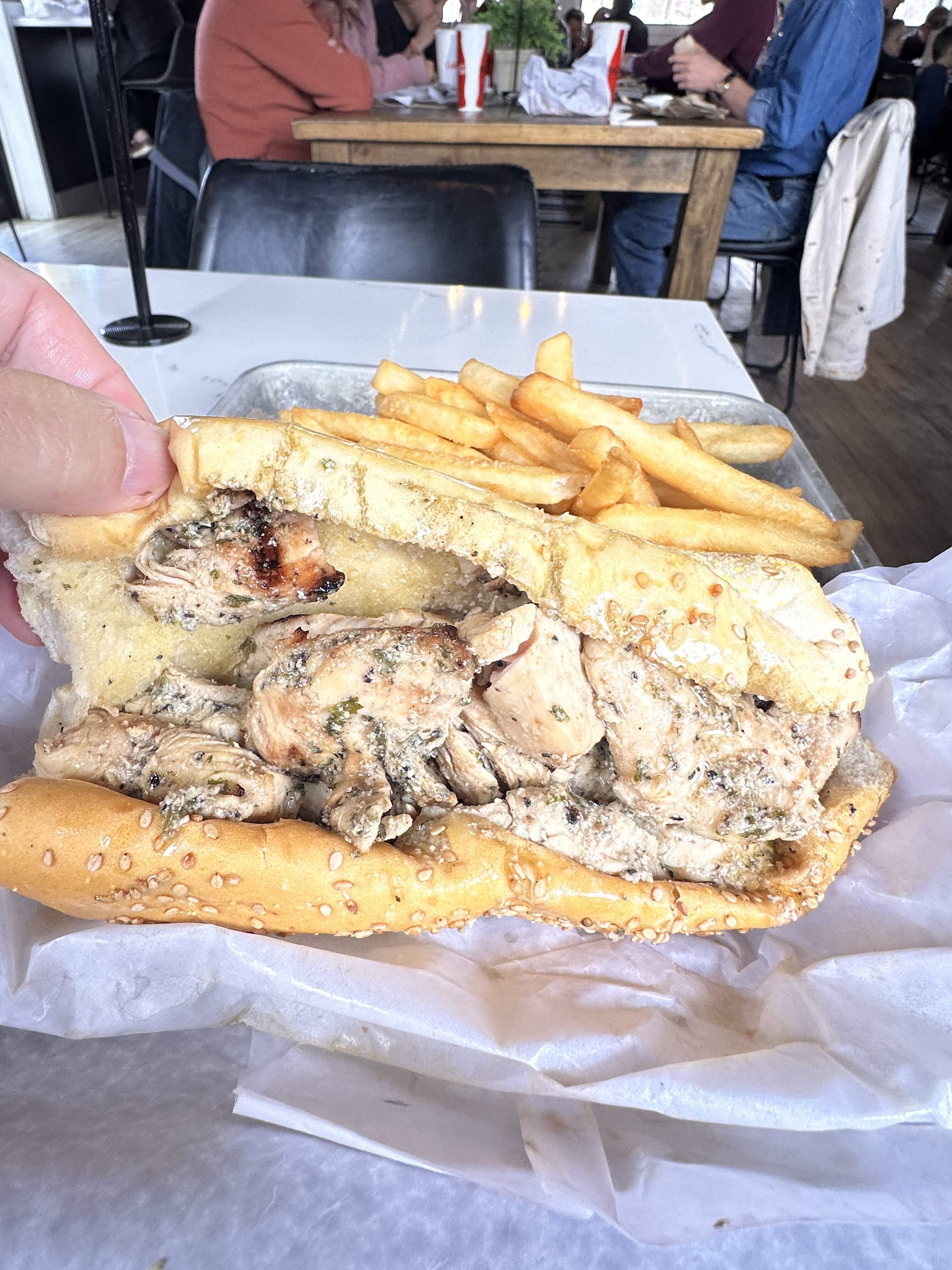 Instead, I opted for a chicken spiedie at spiedie and rib pit. They’re in a new-ish space, about 5 minutes from where I was vounteering. Walked in on saturday at around noon, every table was taken, good to see there’s still demand for this bing relic. In addition to traditional pork and chicken spiedies, they have bougied up the menu with all sorts of “gourmet” choice. Given that this is something I eat once or twice a year, decided to go with the chicken spiedie and fries.
