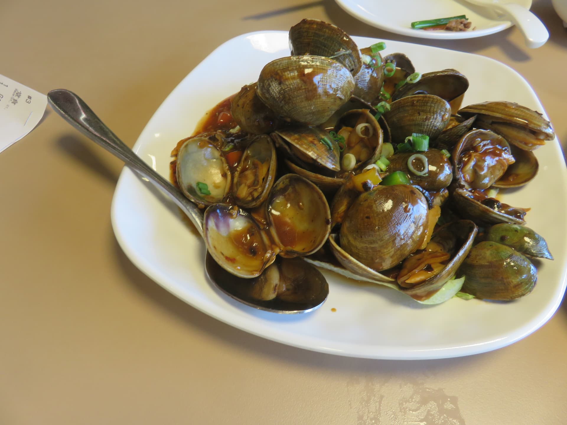 Execution and end products were acceptable but nothing really stood out. The fried Ho-Fun, though tasty, lacked ’ wok-hay ’ aroma…the beef also lacked charred caramelization. IMO, a few establishments along the Hwy#7 stretch like ‘Starchiva’, ‘Chi-Star’ or ‘My wonderful kitchen’ all managed to offer a more superior product. The clams, again was acceptable, the sauce tasty with a touch of welcoming spiciness. However, it’s nothing special to write home about!