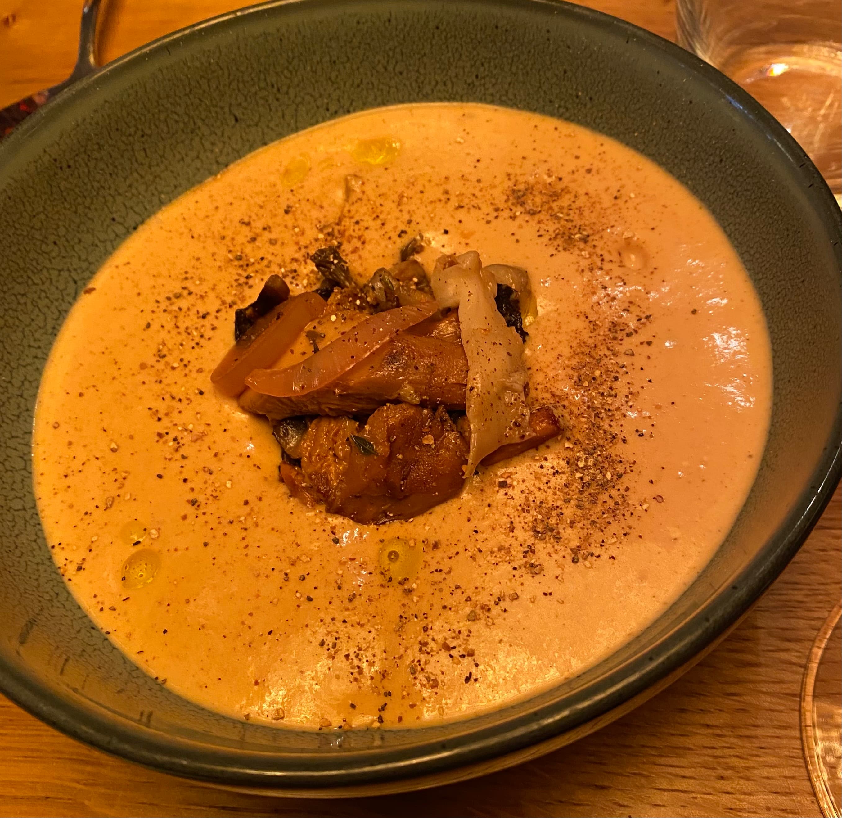 The mushroom tartelette almost brought tears to my eyes, it was so good. Underneath the mushrooms and the creamy yet light cloud of mushroomy goodness was the tart shell. It was crunchy & delicious. Beautiful textures in this dish.