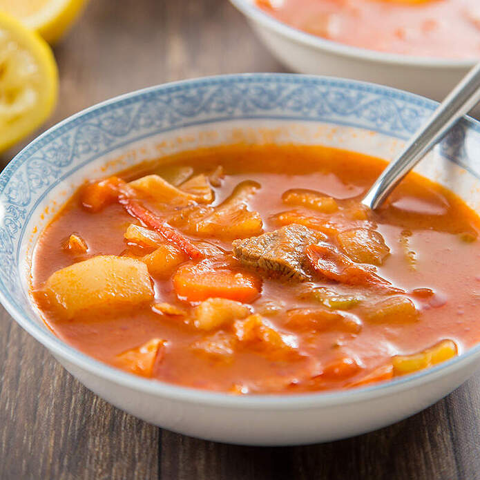 It’s really a kitchen sink soup, you can definitely use a pork stock, add bones, bacon, cabbage , and sauerkraut. Very flexible.