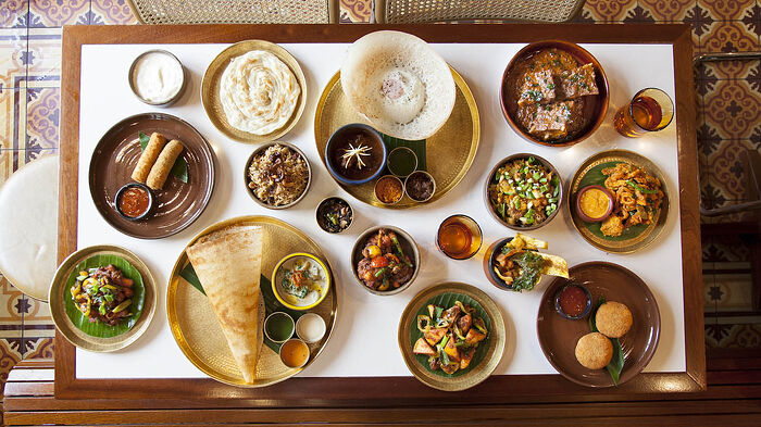" At Bungalow in New York City diners tuck into bright contemporary Indian cuisine, like homemade paneer with cashew, cardamom and lotus seeds, or lamb seekh kebab with pickled kumquats and plum chutney."