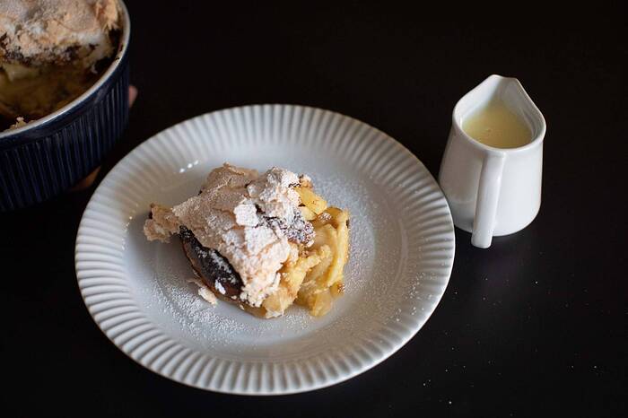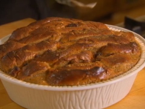 Delicious! I used 10 oz. of bread, which was not quite the full loaf. It was a bit shy for my 7”x11” baker, but probably too much for the round baker which I used (pictured). I think next time I’ll use the full loaf of bread and bigger, shallower pan (I like those crispy bits on the top best).