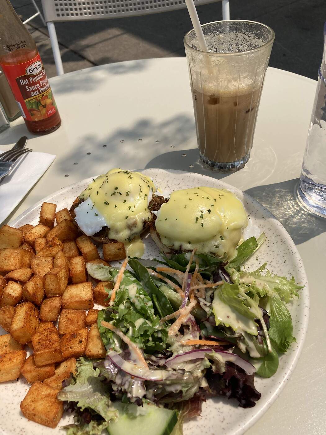 My pet peeve: deep-fried, previously frozen commercial home fries served at restaurants in Toronto. These were served next to a nice Char Siu Benny at Sisters and Co. in Toronto in 2023. The potatoes seen above are very common at Toronto diners and brunch restaurants.