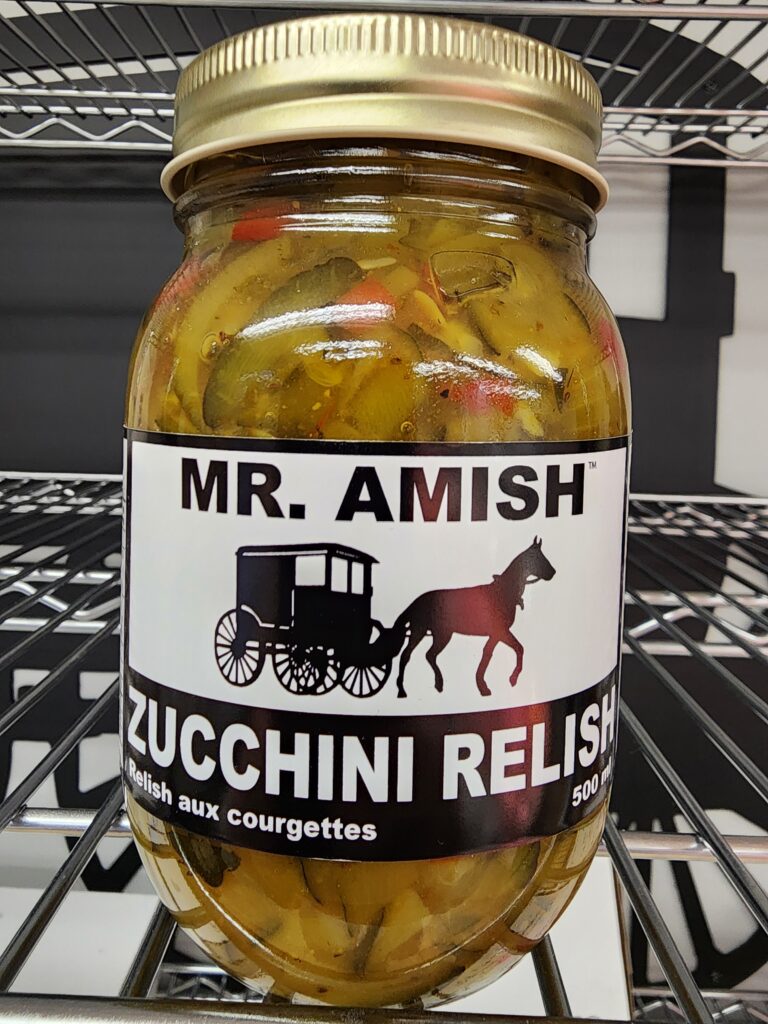 This isn’t British. It is a zucchini relish available in ON. I can buy this in St Thomas, ON . Mr Amish jams are available in Toronto. I have not seen their pickles and relishes in Toronto but I haven’t looked hard. Made in Strathroy, ON, Mennonite-style stuff .