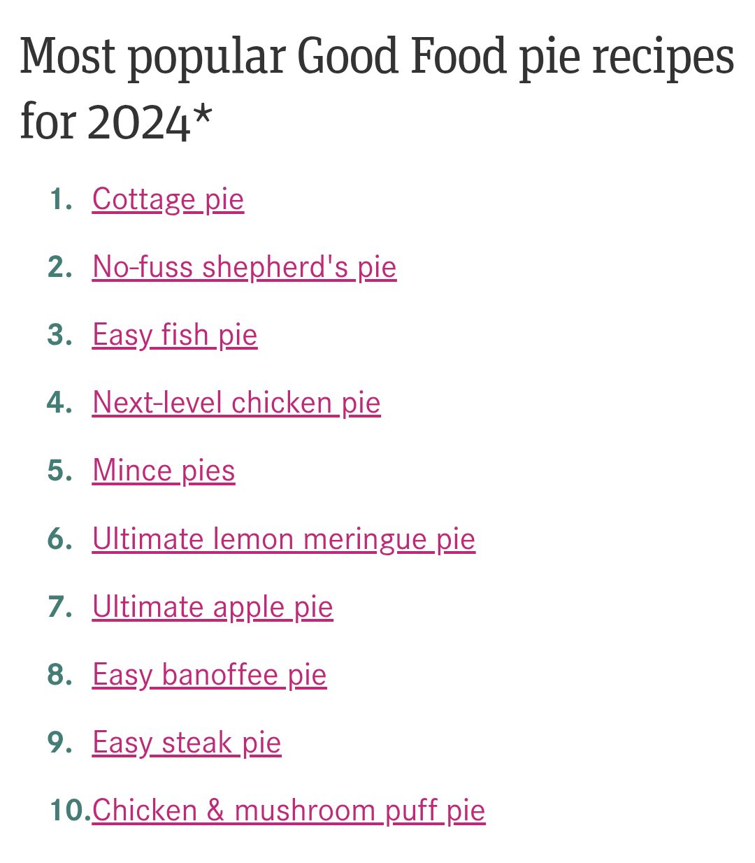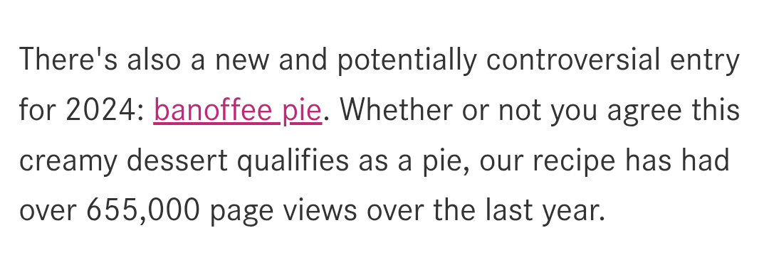 Any list that has banofee pie at 1 and pork pie at 10 is clearly very suspect. Even in 2023.