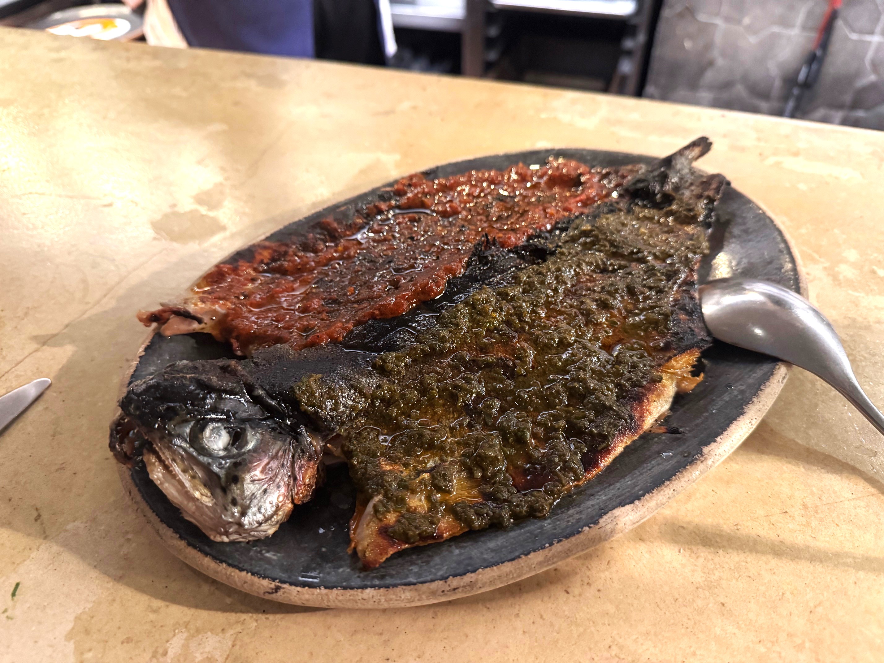 Whole Butterflied Trout - Mexico City style, with Harissa on one side, and Chermoula (The North African Chimichurri) on the other. The sauces were very mild which was a good thing. Much of the richness came from the Pil Pil sauce at the base. Very good overall, but a very large dish without any sides. Maybe some rice, or even pita bread would be nice. Or at least serve the cabbage dish with it.