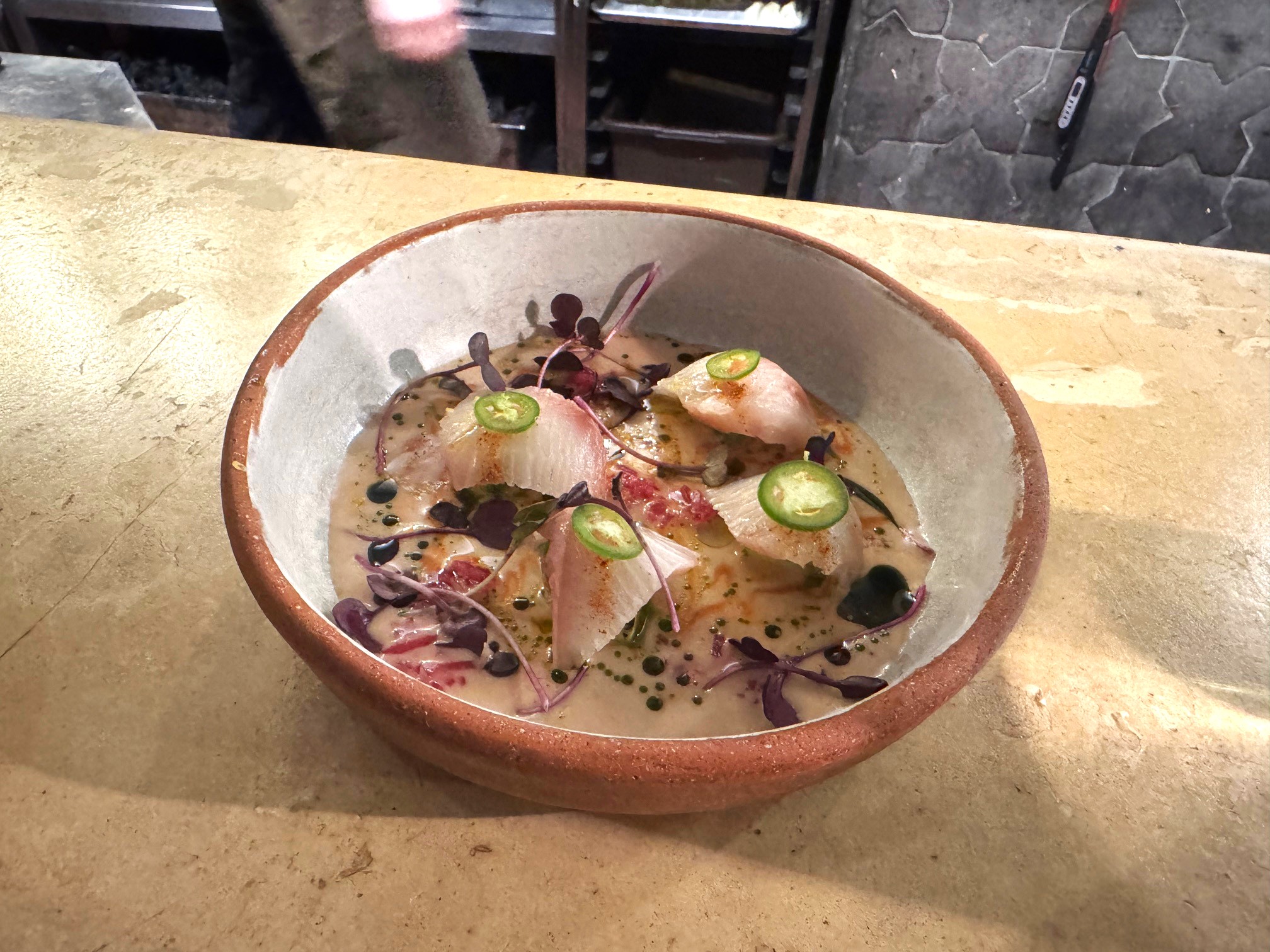 Hiramasa - The most hyped Crudo on the menu was just ok. They age all or almost all their fish, but here the 4 delicate cuts get lost in the sauces and avocado hiding underneath. Good flavors but mostly not from the fish.