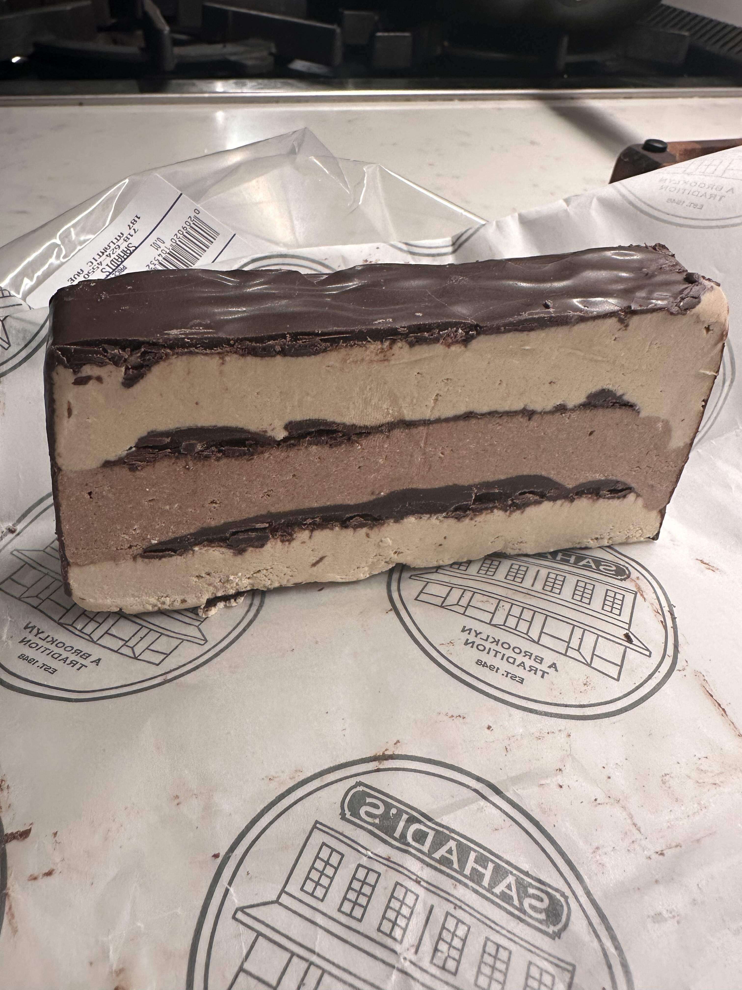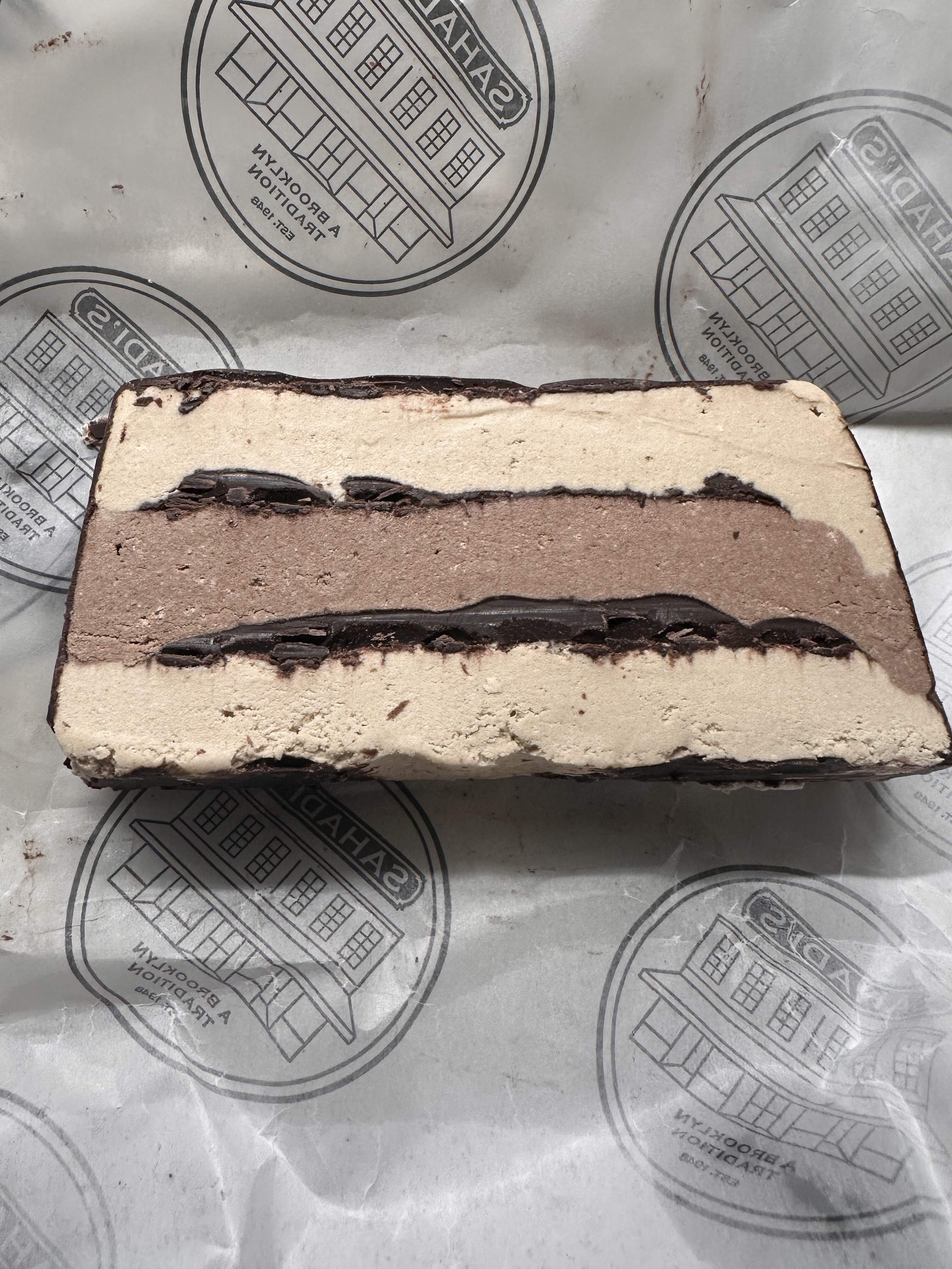 Three layer halavah from Sahadi’s on Atlantic, the chocolate border probably reduces rather than sweetens the dessert ![]()