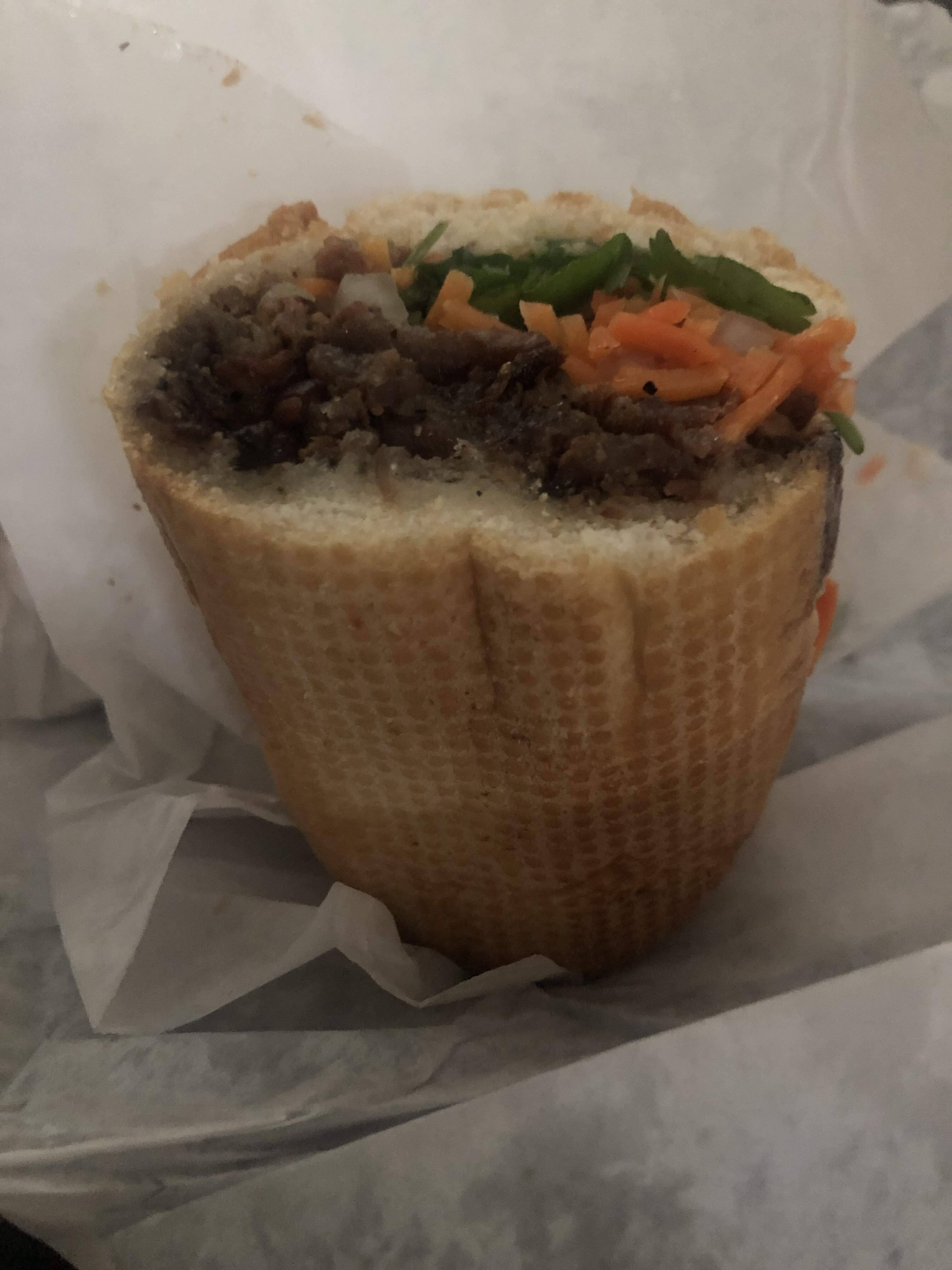 Clean, comfortable padded chairs. I got a large Vietnamese Iced Coffee $6.75 and a BBQ Pork Banh Mi, bread is good but doesn’t shatter. Total price was $15 and change.