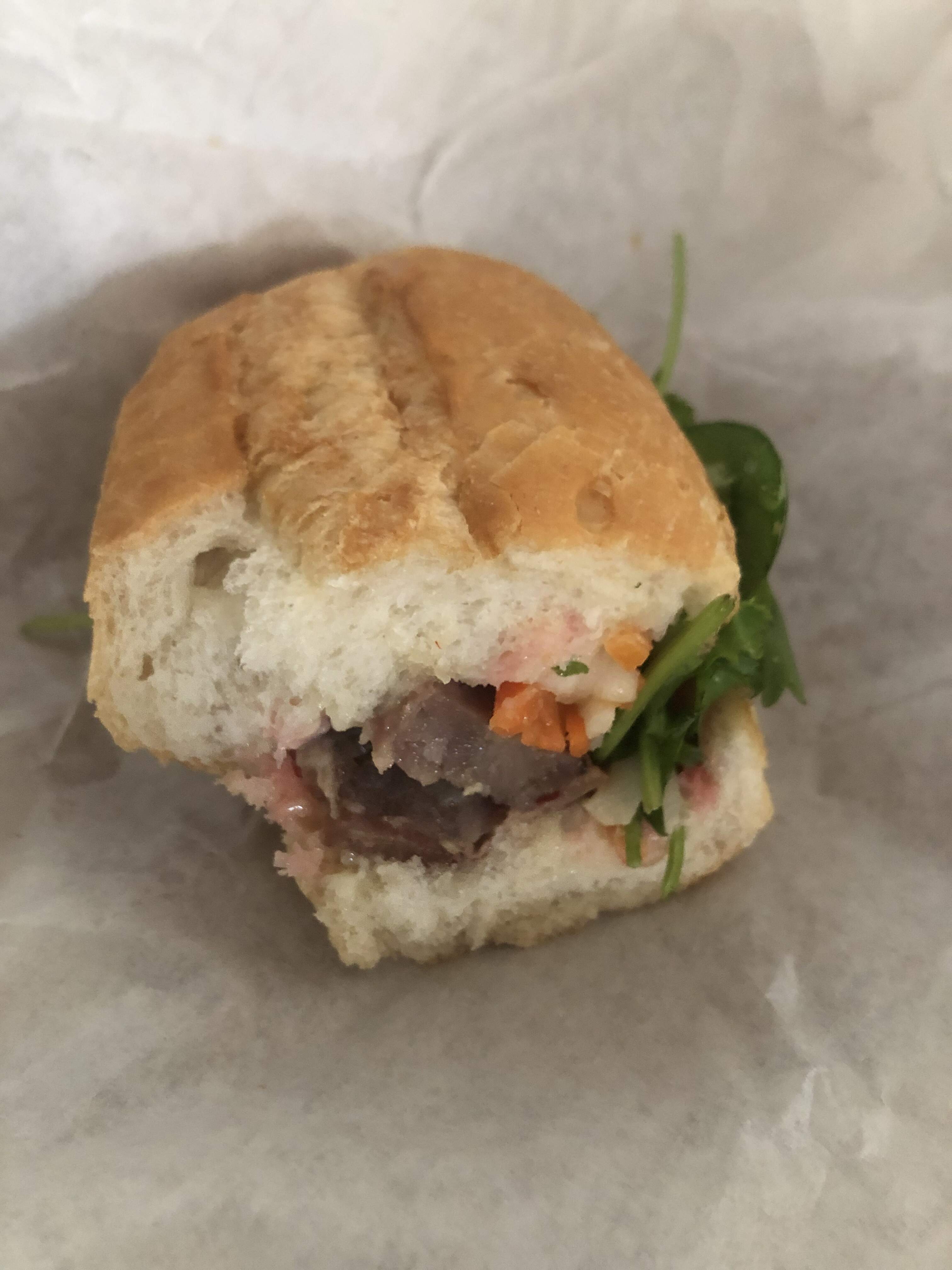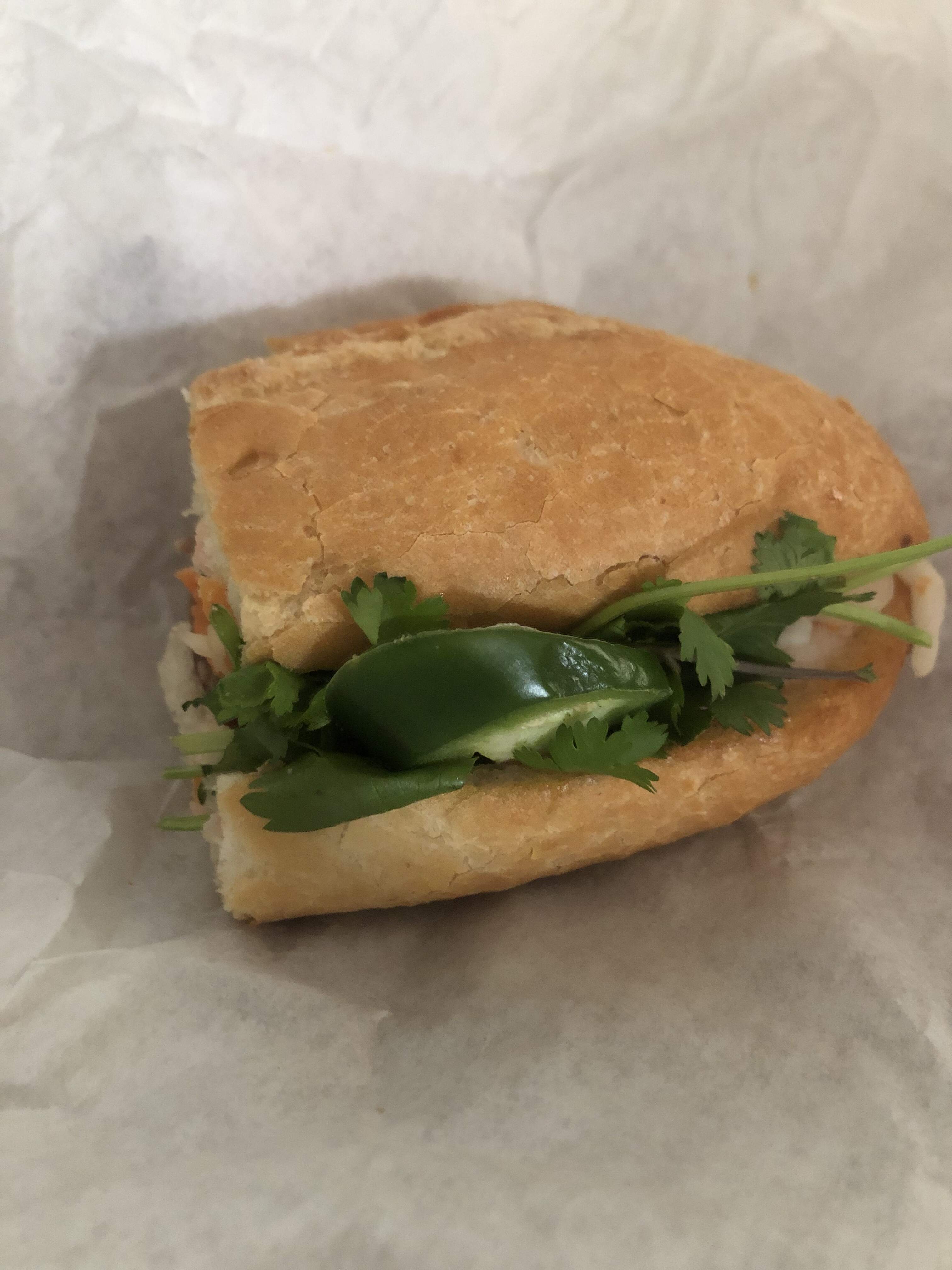 I chose Lemongrass Pork; the bread was excellent, loved the iced coffee but sandwich filling wasn’t great. For some reason, the bit of jalapeño nearly killed me, a really unusual one that seemed hotter than serrano!