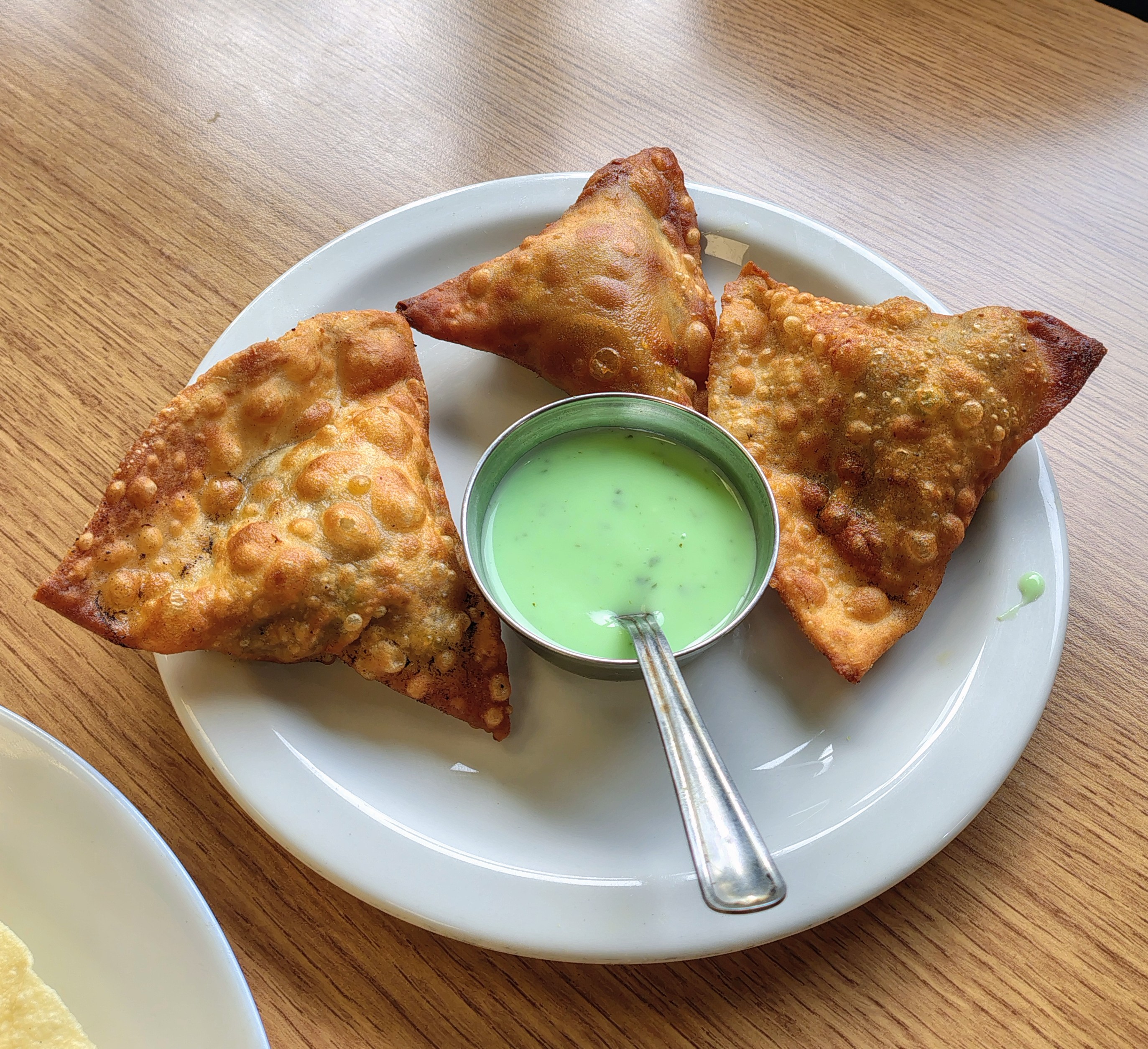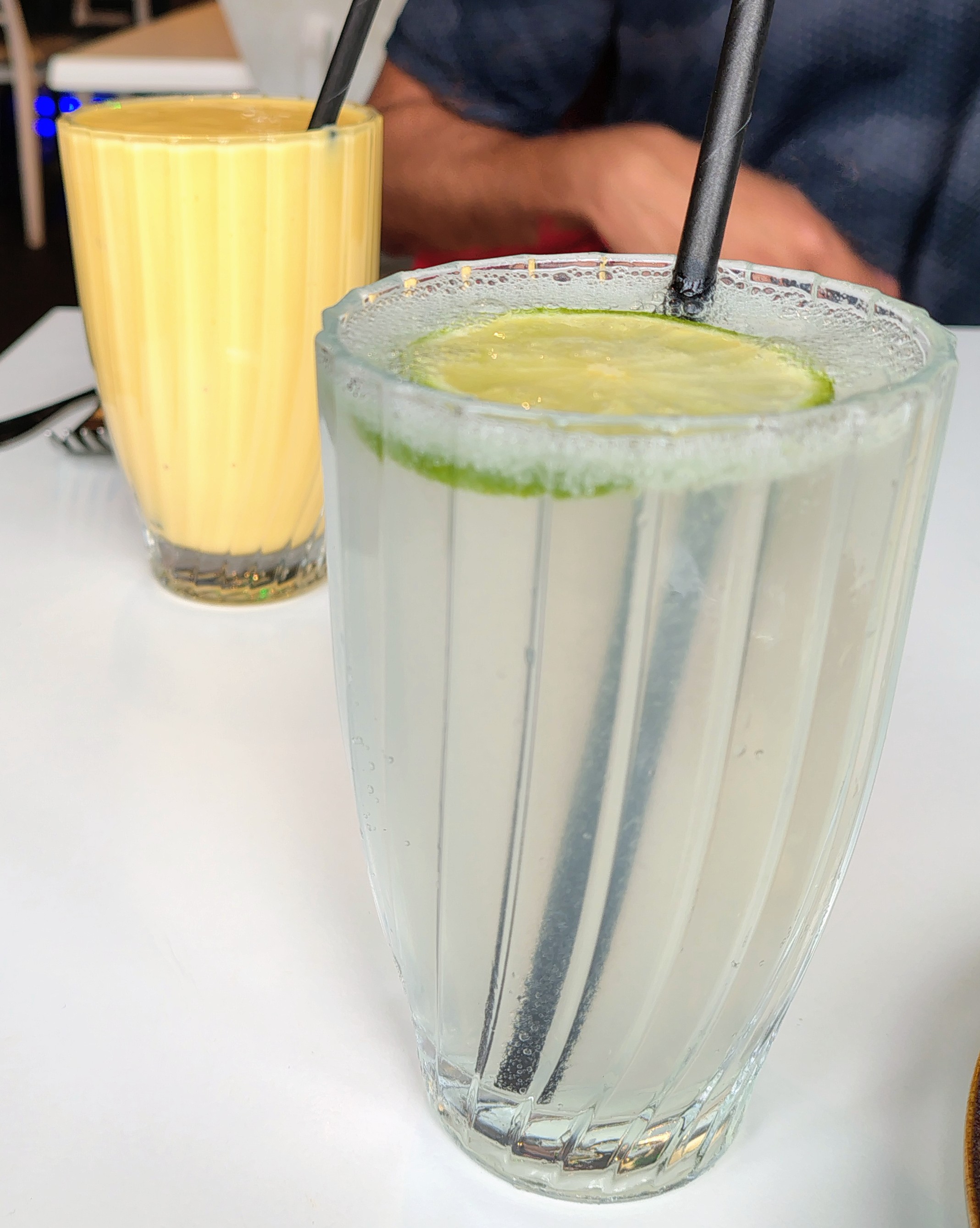 Then the waitress changed to the primary school-aged daughter of the owner, very carefully making her way across the room with the tray of drinks: mango lassi and fresh lime soda. The lime soda was less sweet and no added salt as requested. Very refreshing.