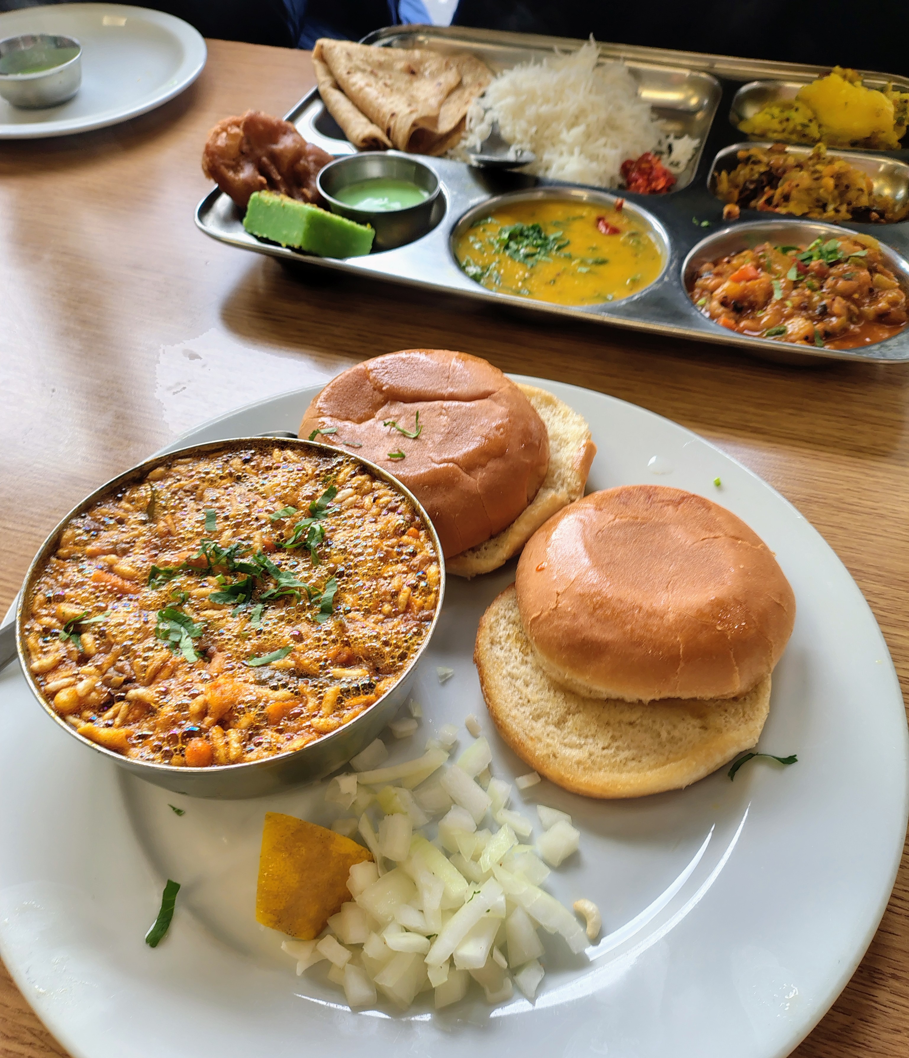 Everything on the menu is vegetarian. The thali was great - all the curries (a dry potato curry, a dry cabbage curry and a more liquid curry of carrots and black eyed peas) and the dal were excellent. We didn’t have the kachori as it was really oily. The chapatis were nicely made. Sadly, the misal part of the misal pav was a miss - too salty, I think from a fistful of chanachur (Bombay Mix) that had been added in.