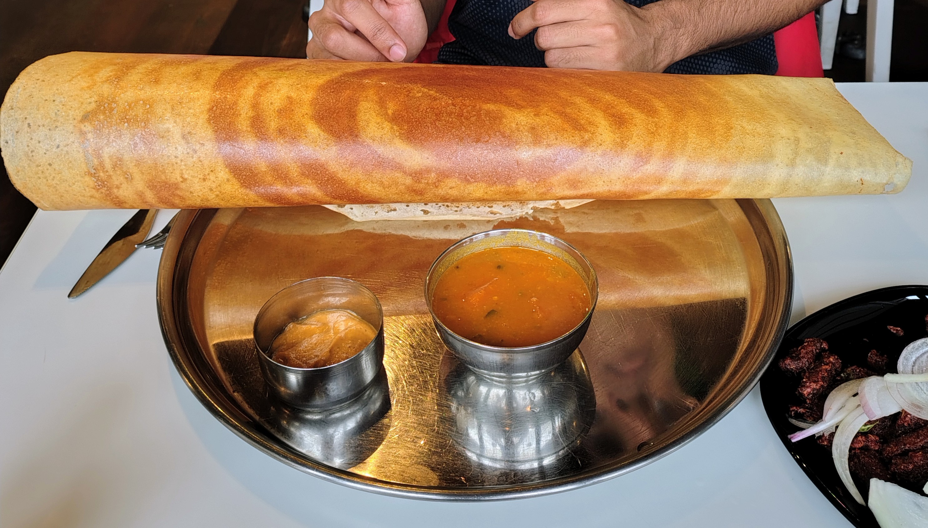 We ordered the thali and misal pav. I thought I had taken a photo of the thali, but it was just a sideways photo of the chef/server/owner of the place!