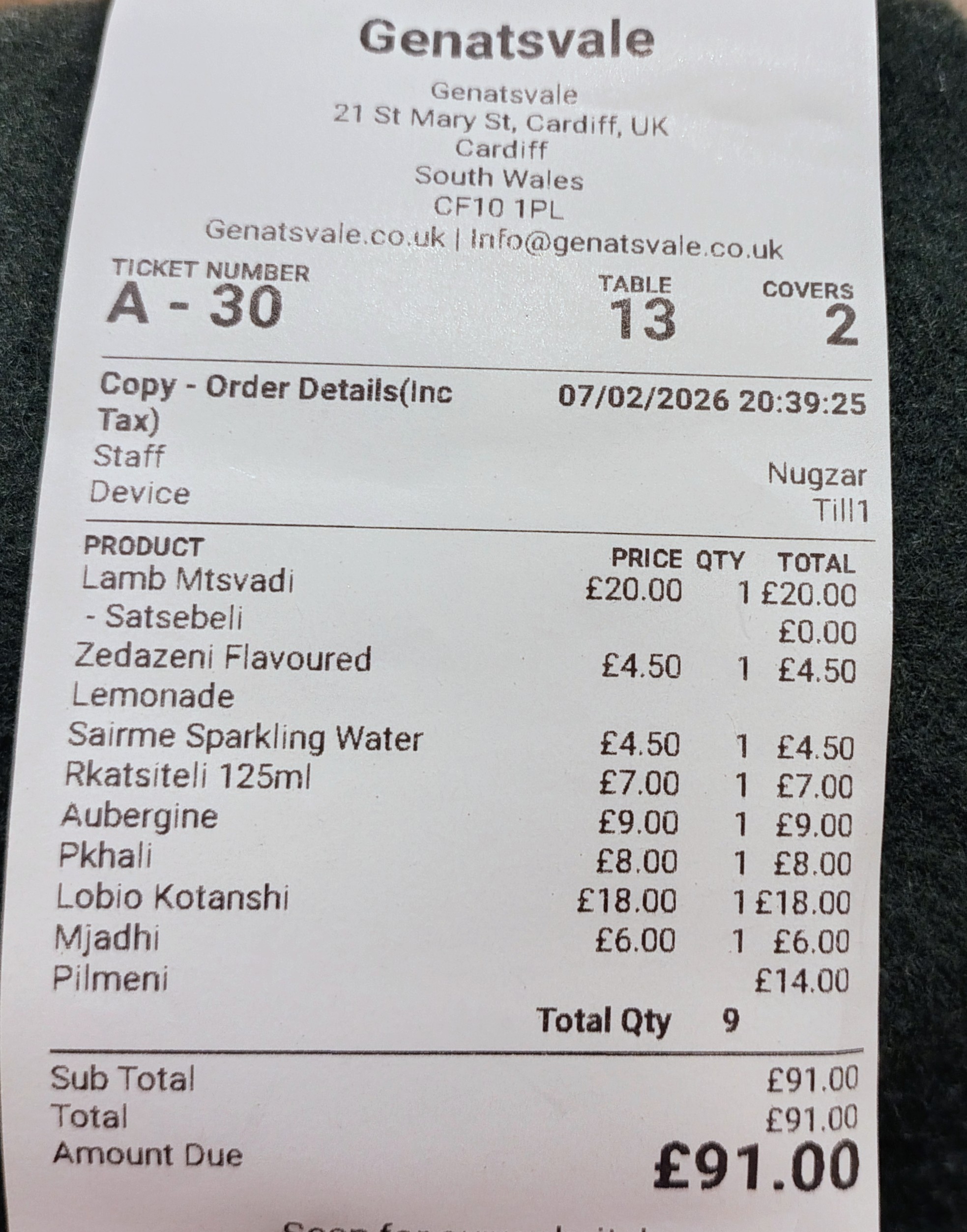 A lovely dinner at this restaurant in the city centre. Our first time trying Georgian cuisine.