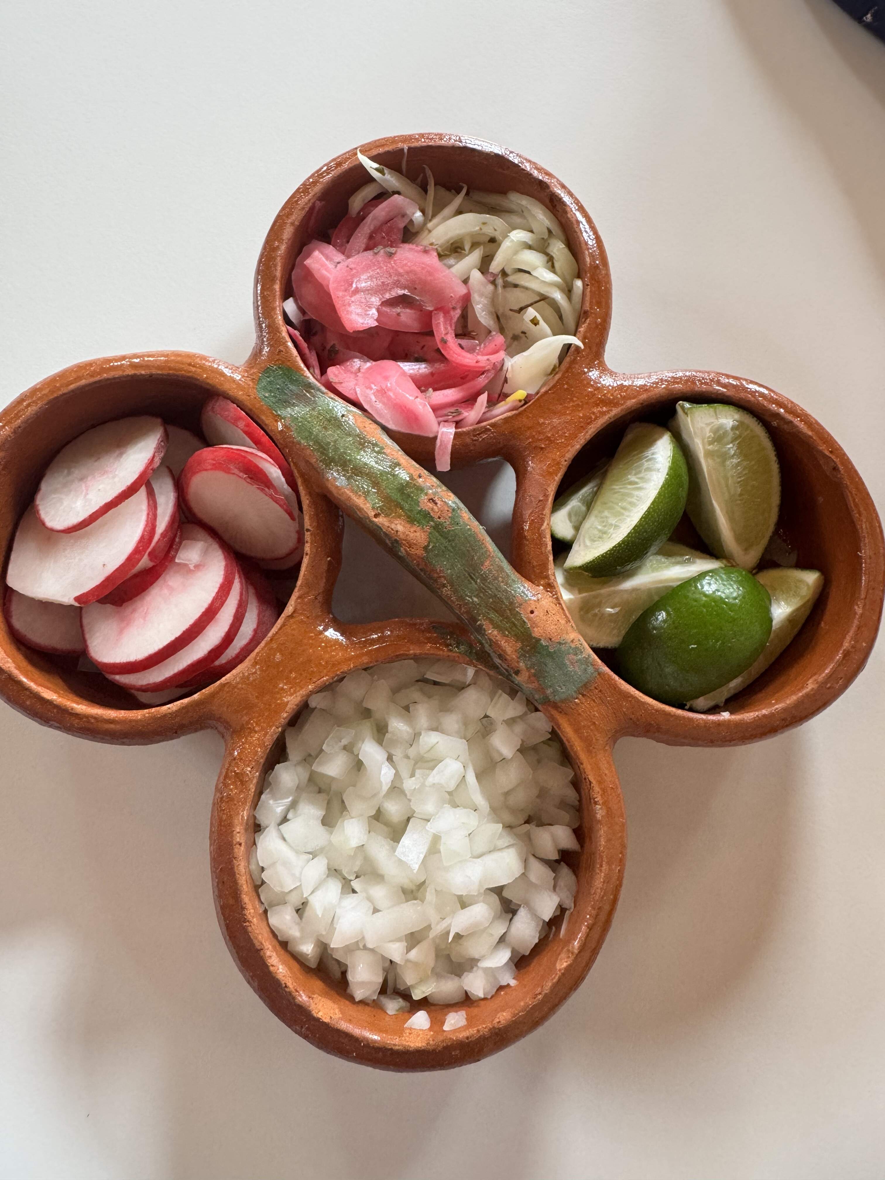 I guess she started as a backyard restaurant and now has a brick and mortar. Specializing in large earthy tostadas and other dishes from Jalisco. Cold rainy day felt like a good time for pozole, which was very good. Customize to your liking with onions, pickled onions, lime and hot sauce. The hot sauce on the table is ground dried chiles in oil and is deceptively hot, so add a bit at a time to taste.