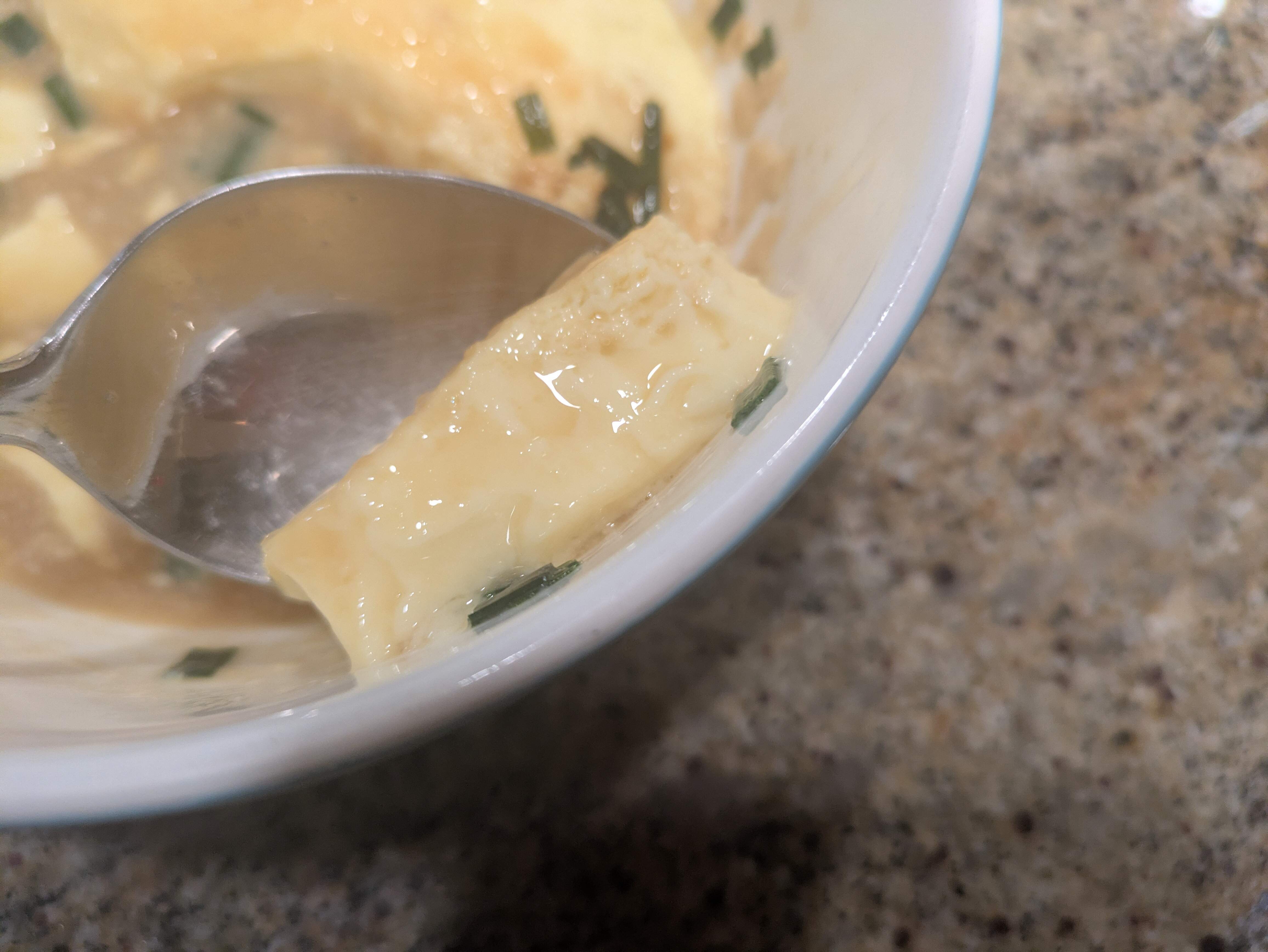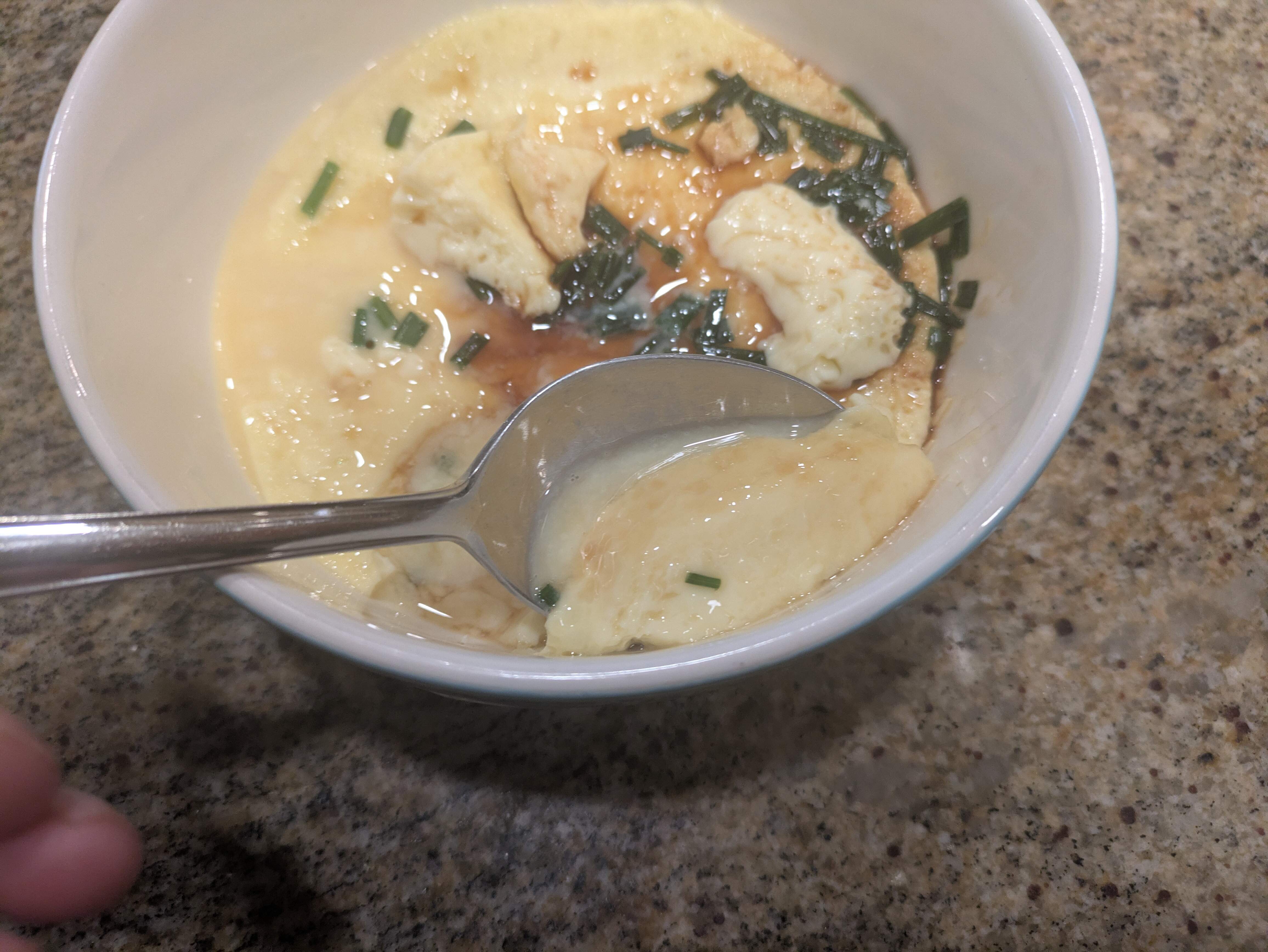 Ahhh! Thank you. I was thinking there was a lot of whisking and a lot of tiny bubbles, but skimming or blowing to pop them wasn’t working for me. I was also wondering about the effect of temperature of the eggs and dashi.