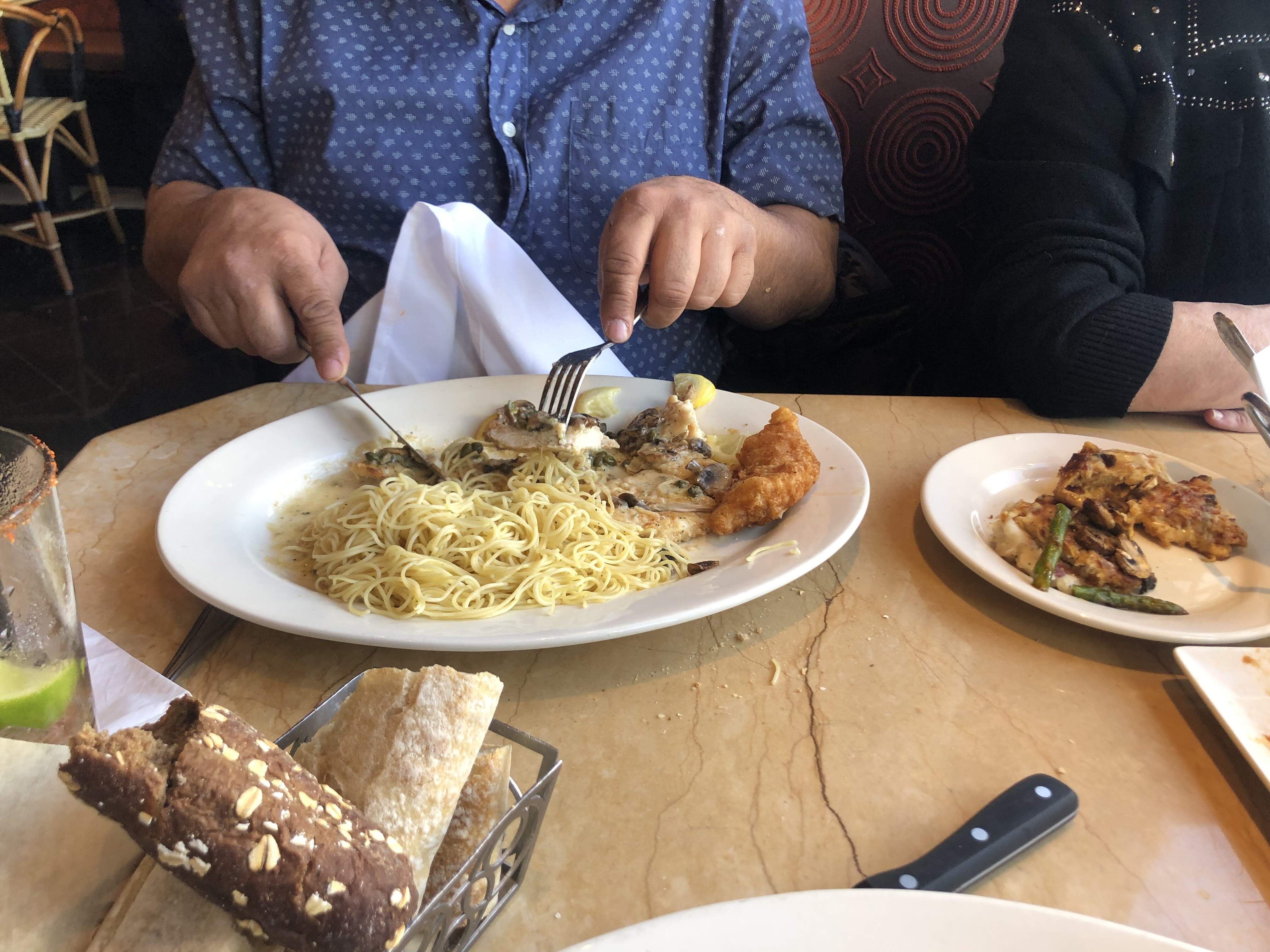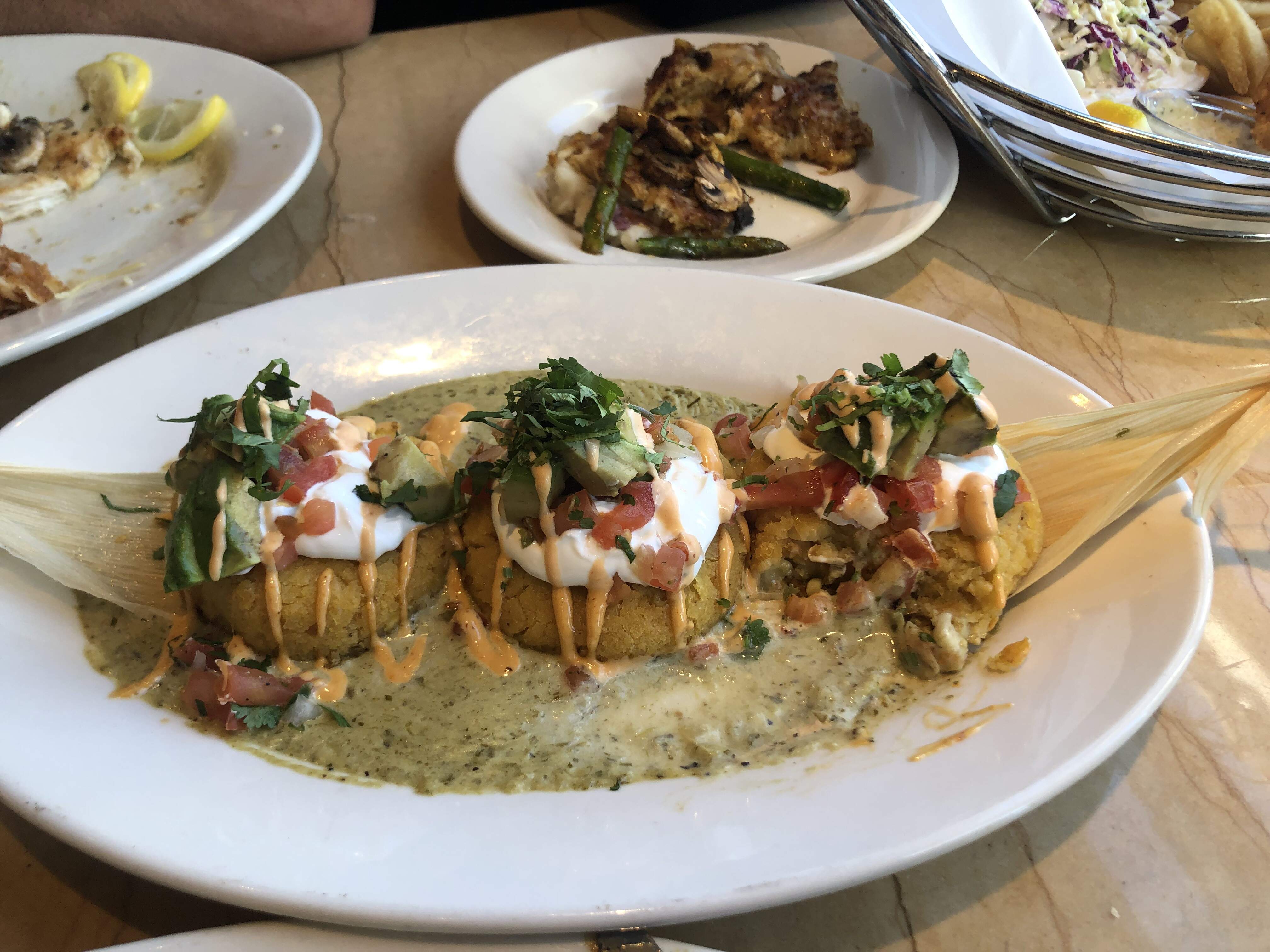 If you go, get the corn tamales appetizer. Menu is VAST, something for everyone.