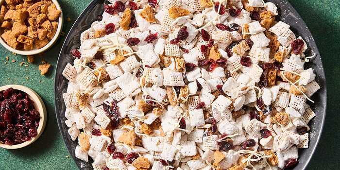 I grew up with a Shreddies and Pretzel version with mixed nuts and Cheese Nips (little squares similar to Cheez-Its) added.