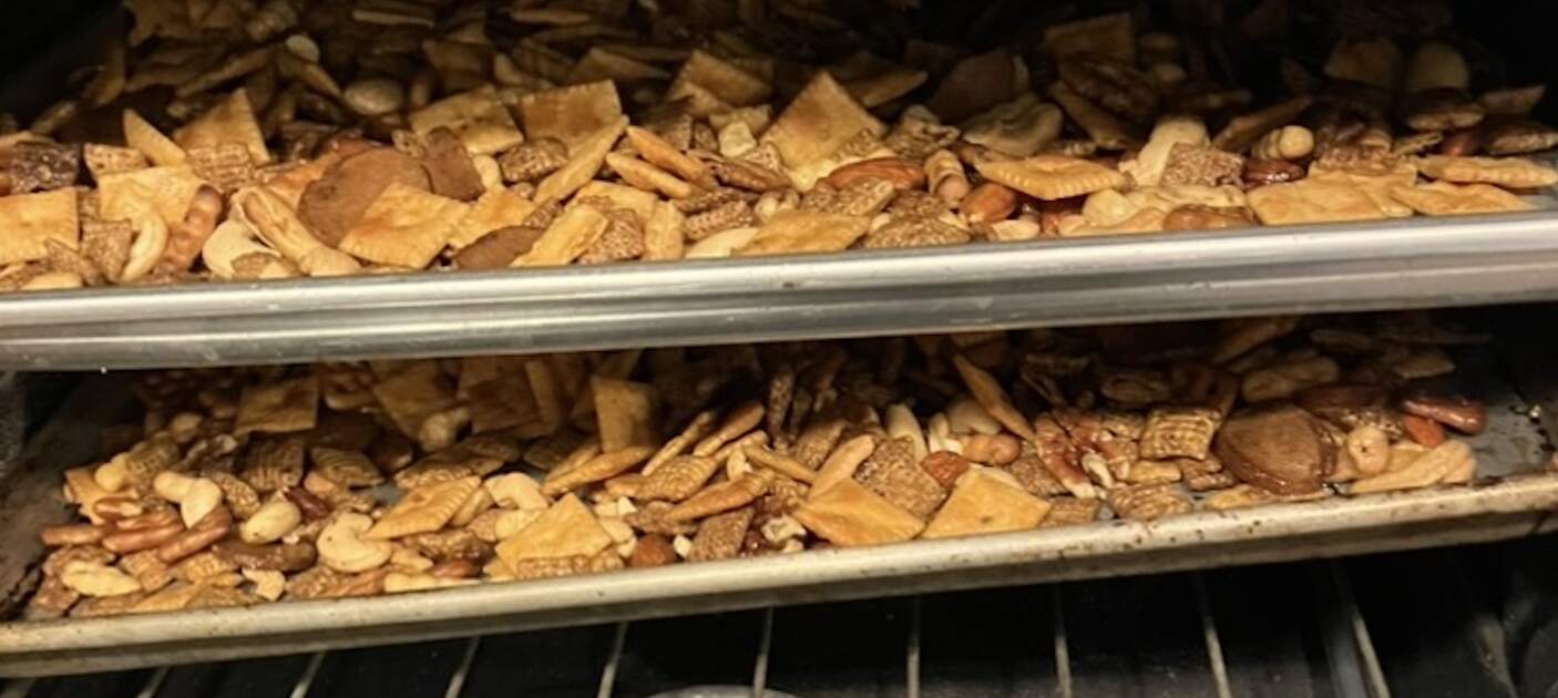I’m happy I made chex mix this evening. I’d forgotten how much turning and checking is required. Smells great here and I’ll sleep well.