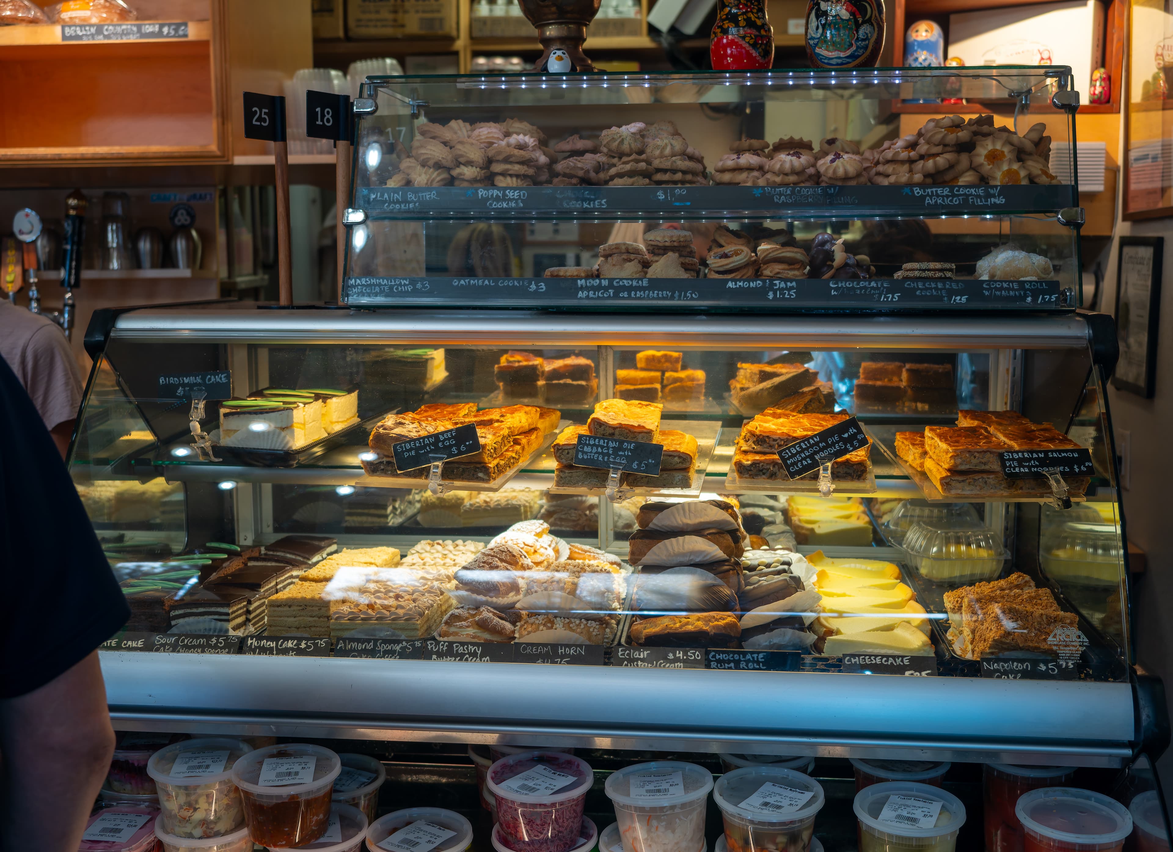 I had lunch at Cinderella Bakery & Cafe in the Richmond before heading to Hardly Strictly Bluegrass in Golden Gate Park this past Saturday. Cinderella is a Russian bakery, opened back in 1955, that also serves Russian dishes like borsch, pelmeni, olivier salad, and herring under a fur coat. I’ve gotten delivery from them before but this was my first visit to the bakery.