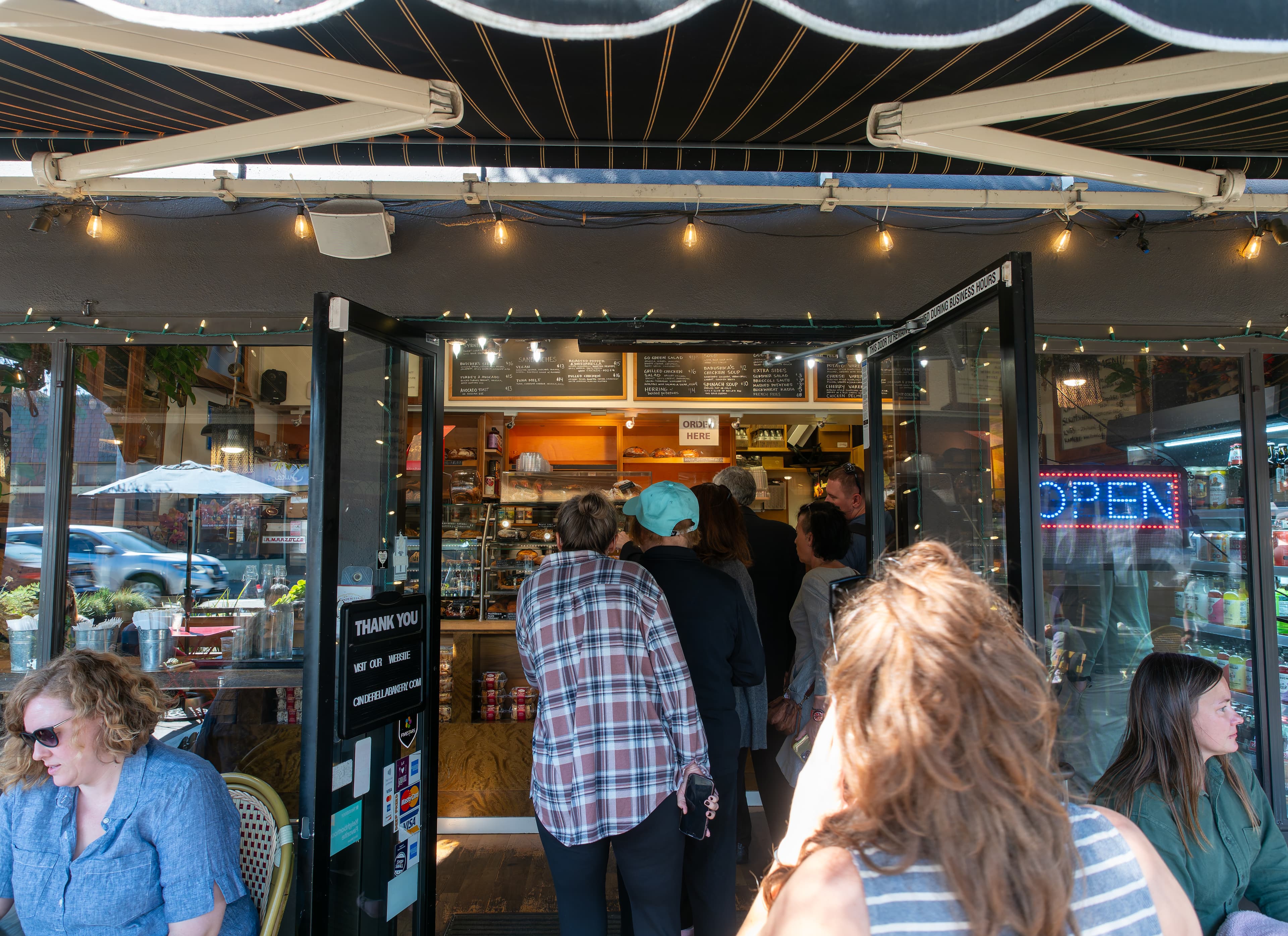 You order and pay at the counter, and you also get a number if you’re getting a prepared dish. There’s no seating inside but there are some tables and a parklet outside.