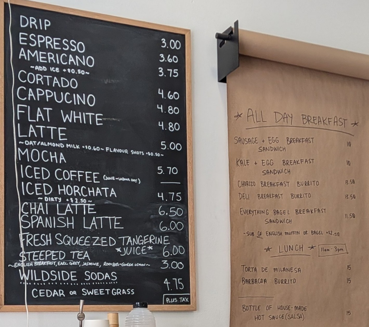 and my Cortado at Masa Deli on Dovercourt each cost $4.60 before tax yesterday. Masa Deli uses De Mello coffee. Also maybe a bit more acidic than my preferred type. I think I’m getting conditioned by my Nicaraguan coffee i drink at home, and am enjoying 3rd Wave Coffee less lately.