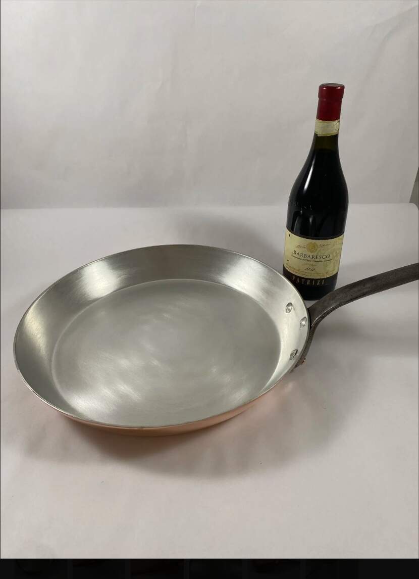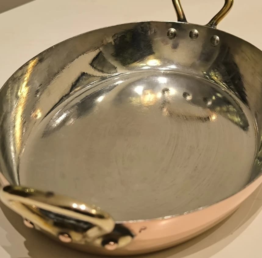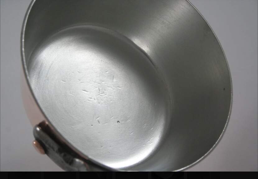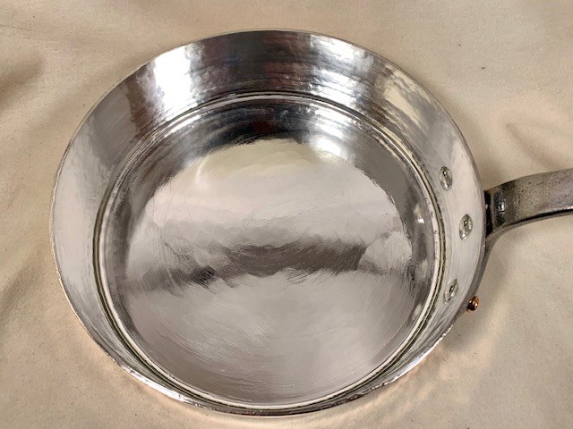 Here’s another example I found of the thicker, more durable style of tinning, in a new old stock Villedieu pommes Anna posted on this forum. Zoom in to see the heavily wiped texture.
