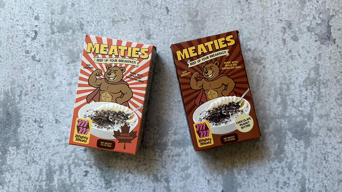 Because I know it’s made of beef, this Chocolate Peanut Butter Meaties cereal looked like it was ready to be put into a hard taco shell. A deeper smell test yielded dry pet food vibes.