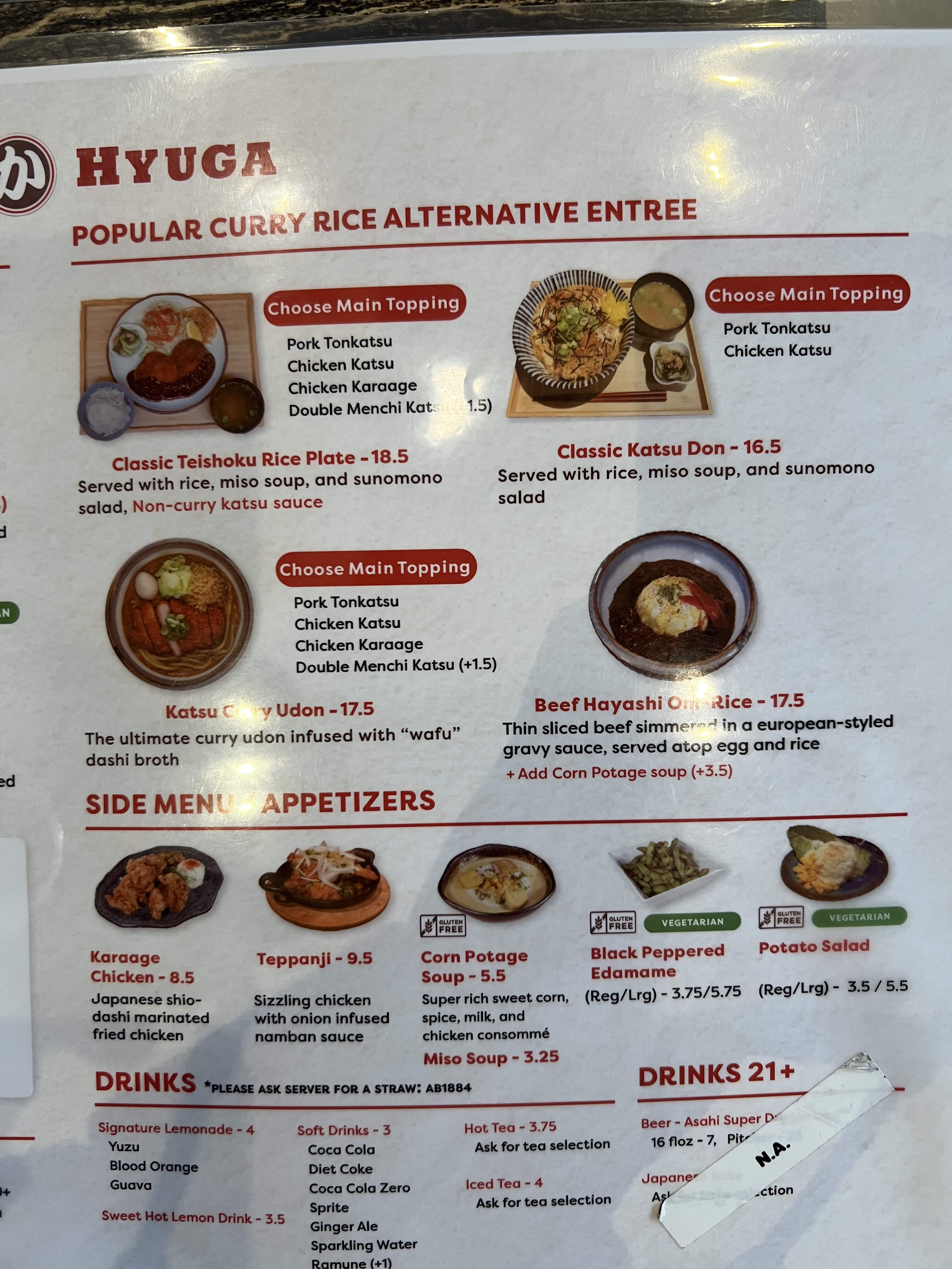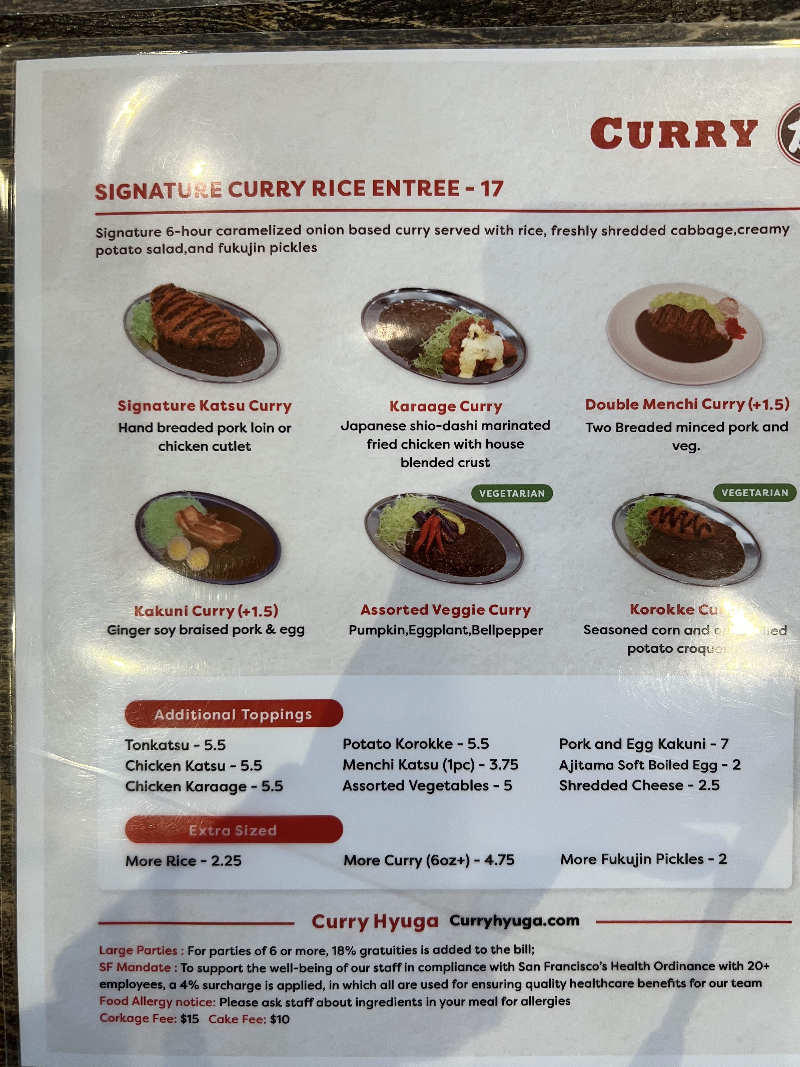 I had a late lunch today at Curry Hyuga in the Mission on Valencia St. They also have locations in Burlingame and Cupertino, and before moving to this location in the Mission had one SF location on Market Street.