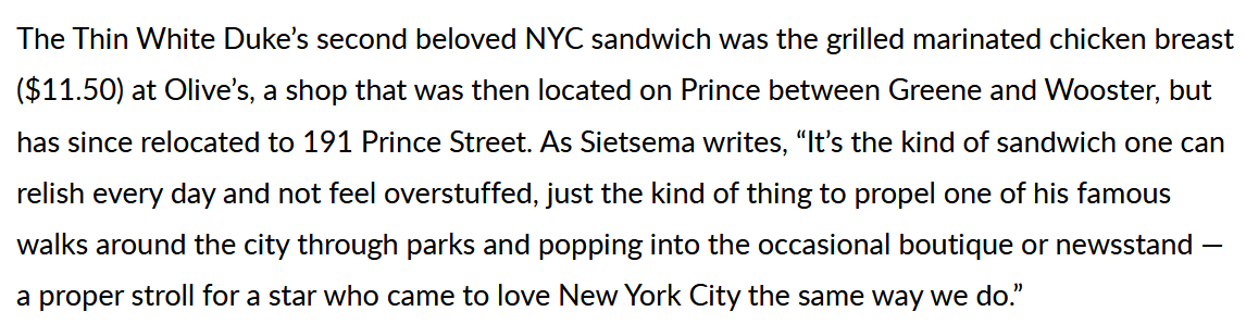 Many years ago, I used to tutor the daughter of the woman who owned Olive’s. She was very proud to make a Bowie-approved sandwich.