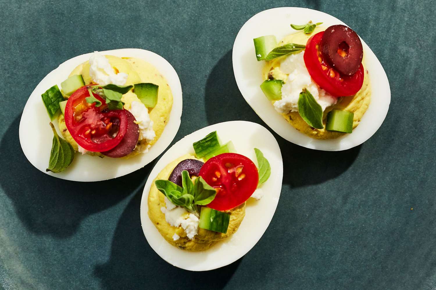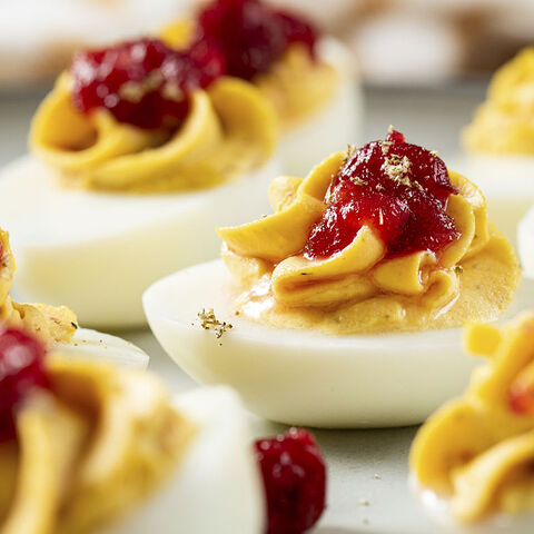 last week, I made a simplified deviled egg, with only egg yolk, mayo, maple mustard, green pickle relish, and crushed red chiles in the filling. Went over well, and it was quicker to make.