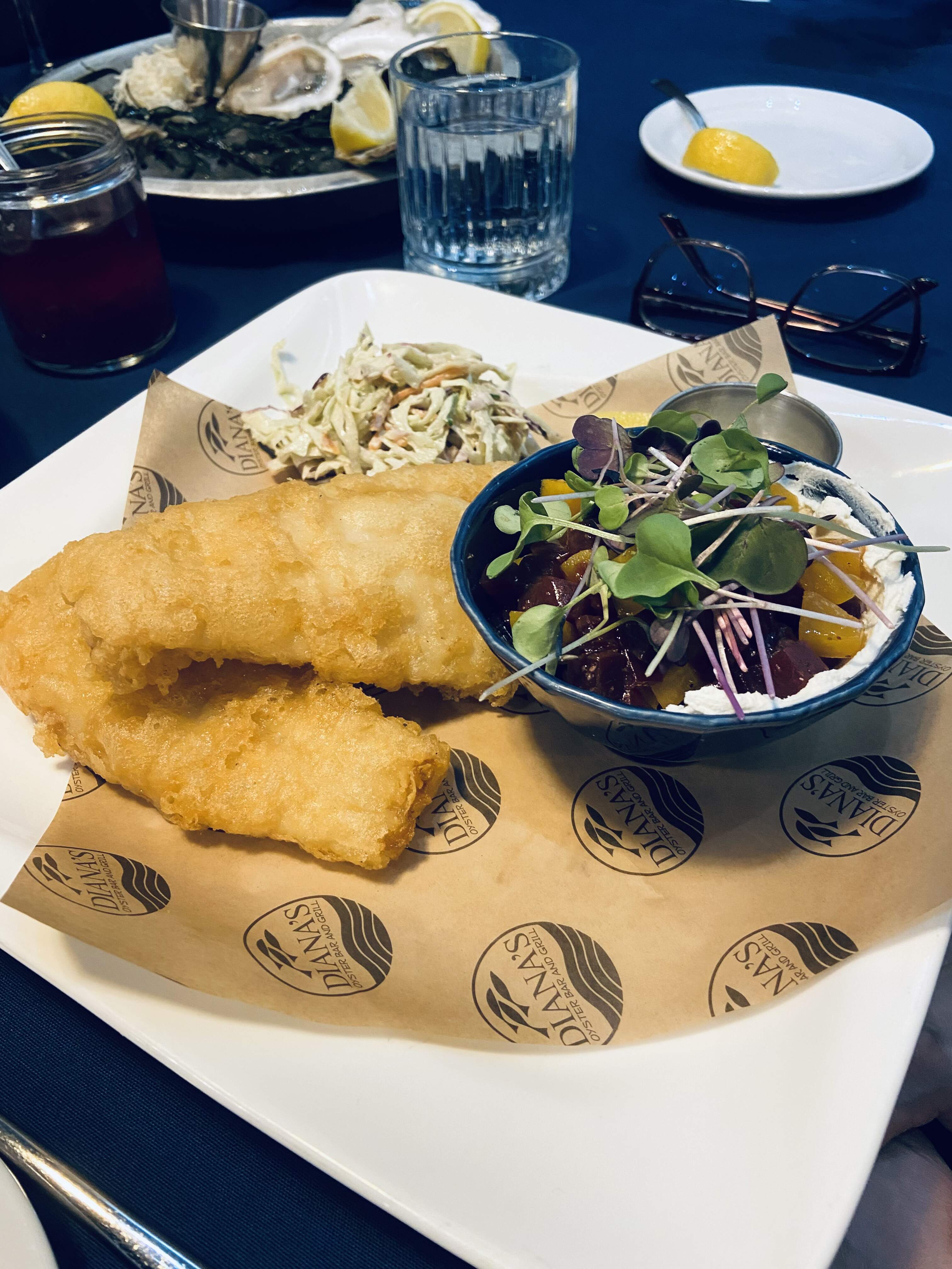 Lastly, contrary to some of the disparaging, negative reviews found on food blogs trashing Diana’s cooked food. The selection we ordered was surprisingly well executed, more than acceptable and enjoyable. Stand outs included the delightful and hearty clam chowder, superb, nicely battered, on-greasy fish and chips, generous, tasty Crab sandwiches and the scrumptious Molten Lava Chocolate cake dessert!