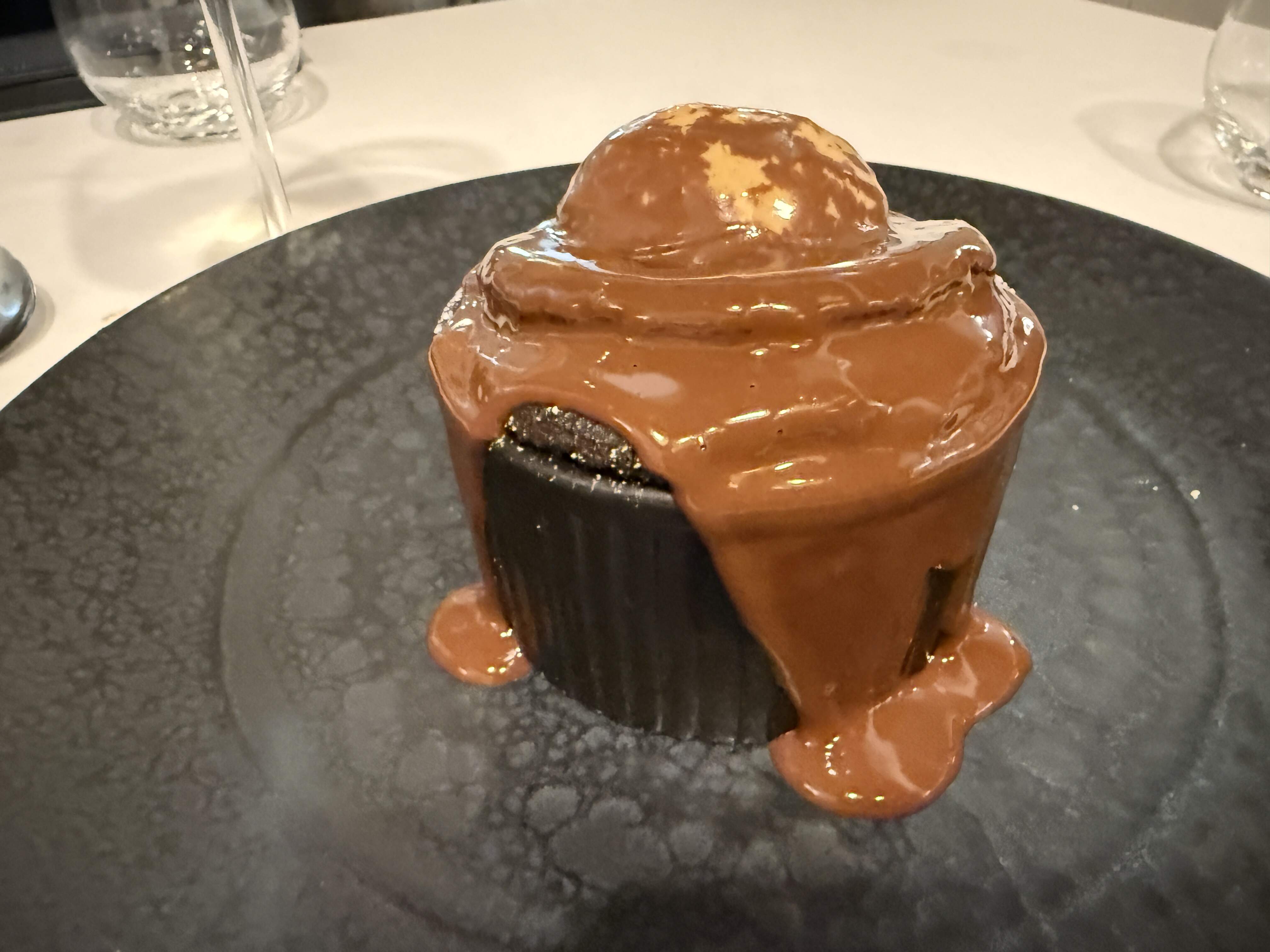 For our mains, sea bass grilled over vine shoots, served with charred bimi broccoli and a manteca colorá hollandaise sauce, a double layered red mullet atop creamy rice and a touch of amontillado, and for dessert, a chocolate soufflé, caramel ice cream, chocolate soup and Palo Cortado. Don´t miss this!