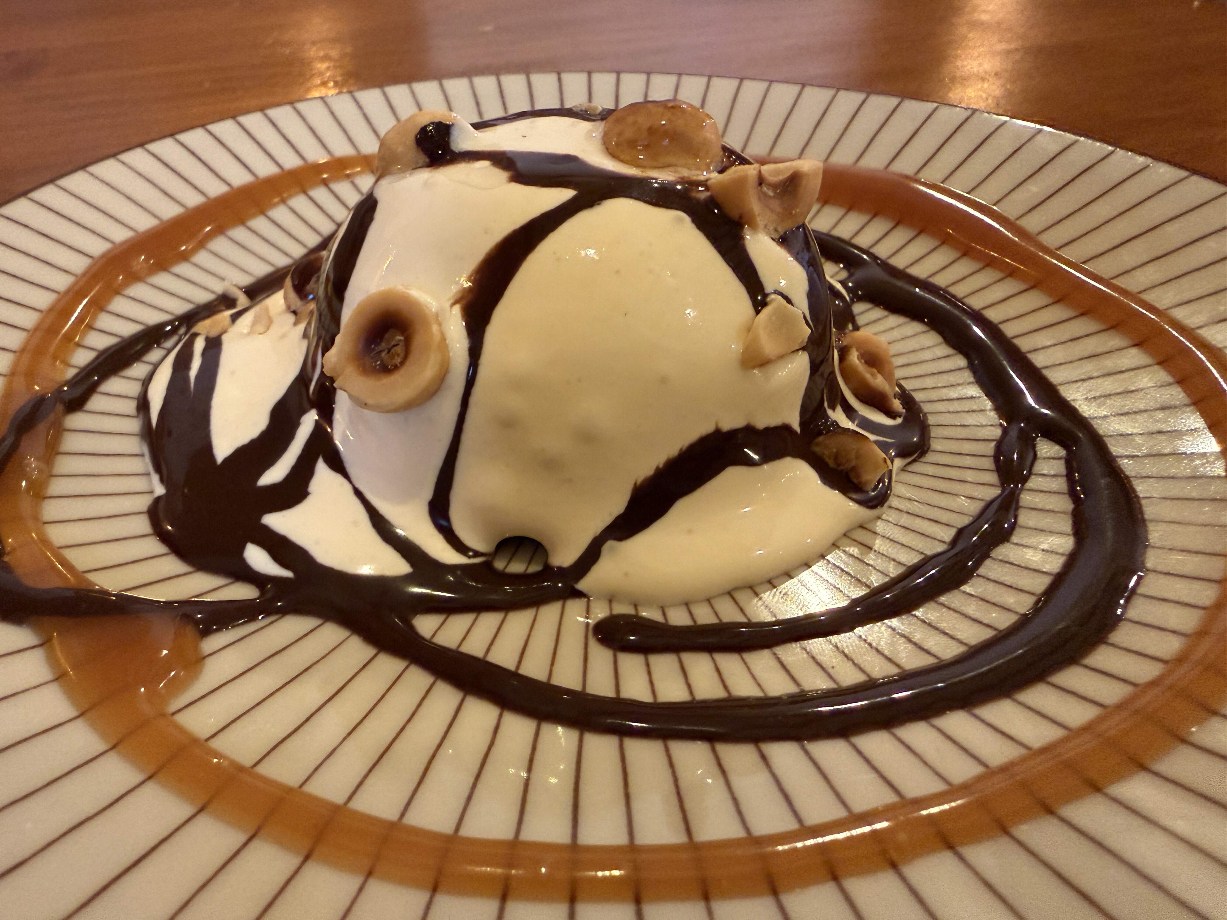 Pumpkin cake over a bed of panna cotta topped with Palo Cortado ice cream