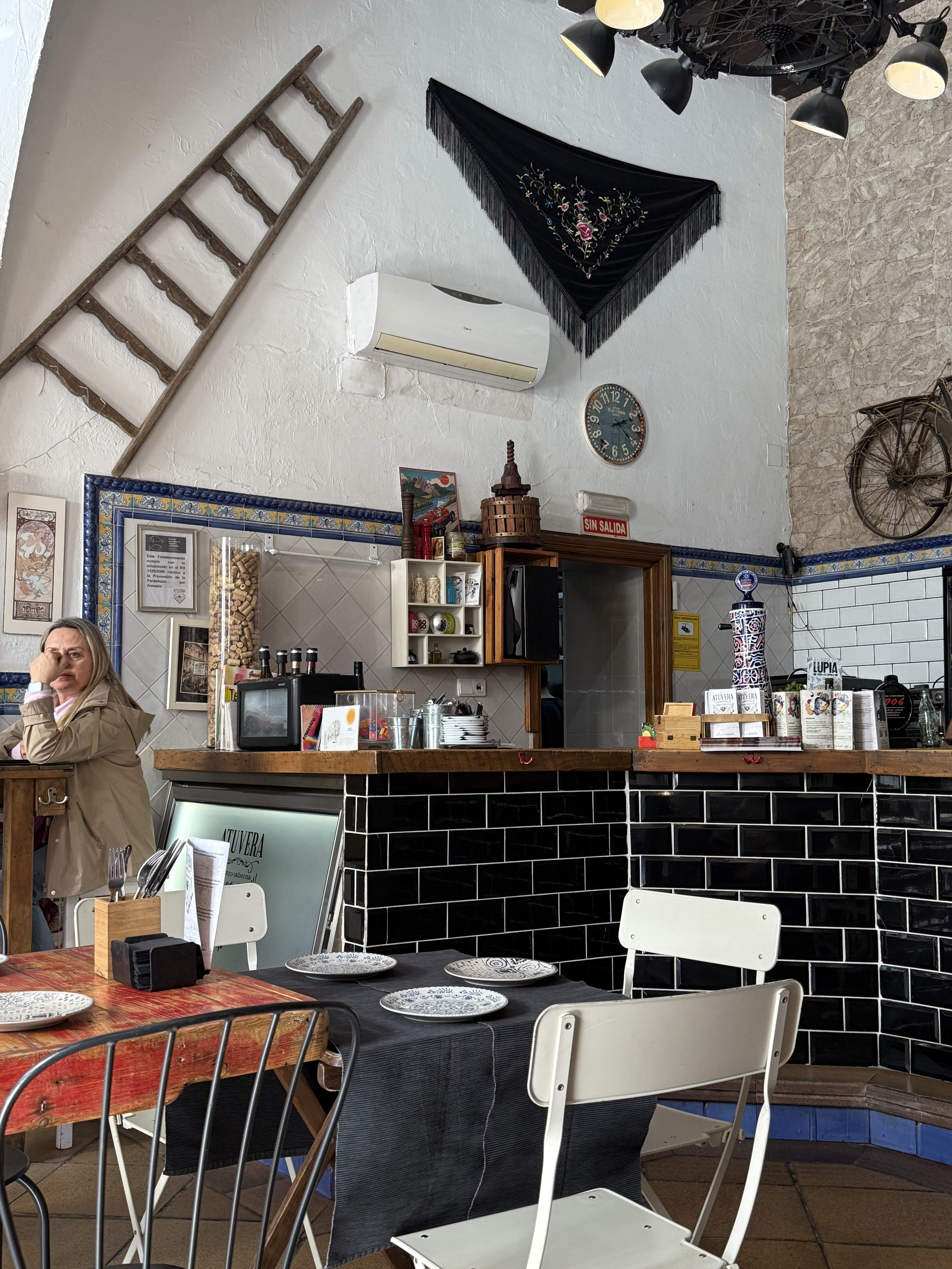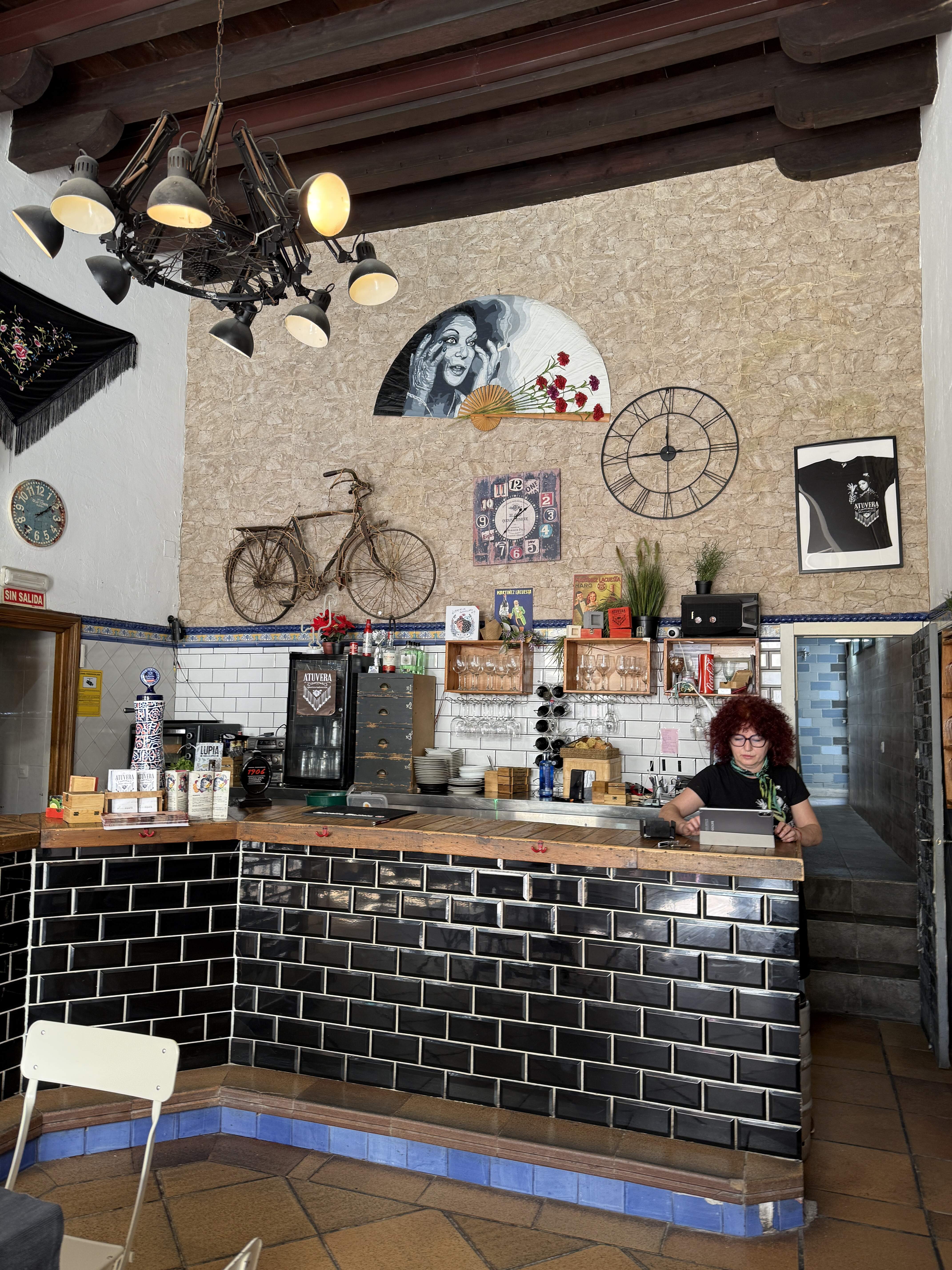 The very polar opposite of the sleek dining spots above, this is a low cost, very funky bistrot (think late sixties East Village or Seattle’s pre-gentrified Fremont), in the San Miguel “cradle of flamenco” quarter, next to the statue of the late flamenco artist, Lola Flores. “A tu vera” was one of her greatest hits.