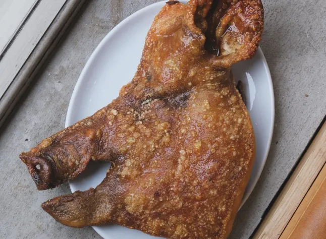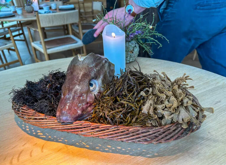 I guess you shouldn’t go in many restaurants as a fish head or duck/squab head (and many whole animal usage dishes) are very common as part of dishes. Don’t really see what is the problem with it.