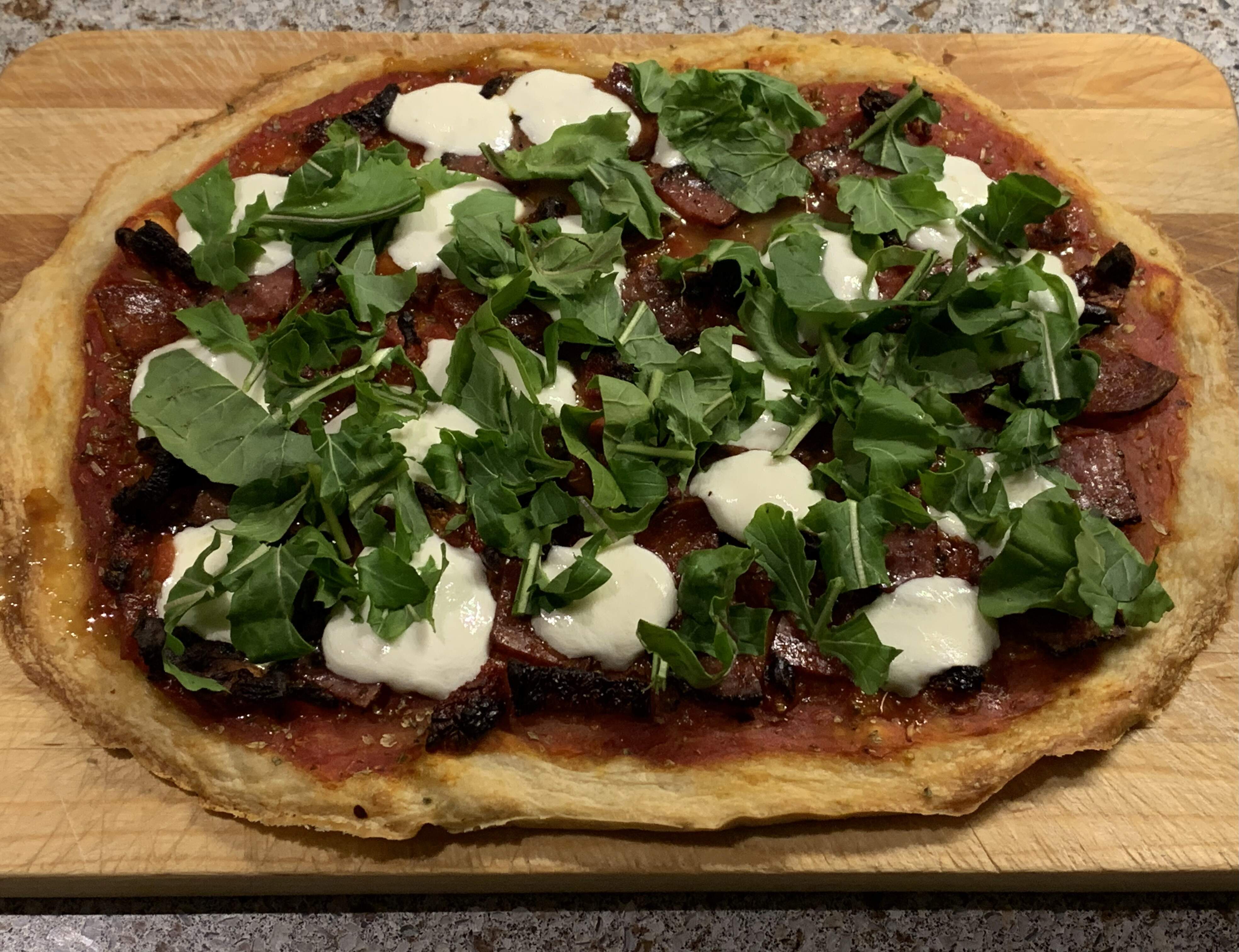 After Christmas, we had a chill dinner of pizza made with TJ’s dough pulled from the freezer and leftover salumi from a charcuterie board.