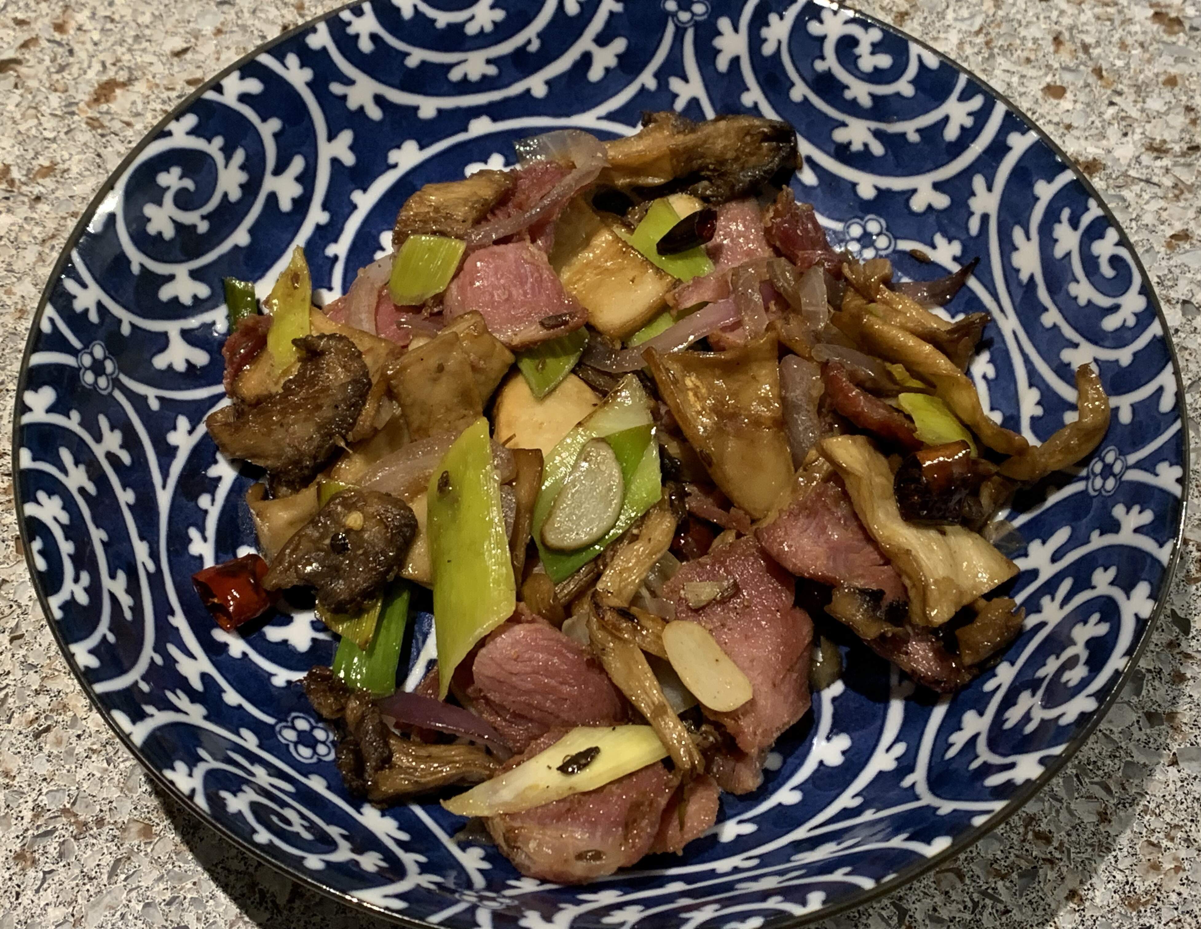 Starting to catch up here with a few meals from Christmas week. I had bigger visions for Christmas Eve, but time constraints prevailed. So, we opted for takeout of Sichuan smoked turkey with mushrooms as the main that evening. This was strongly savory, in a pleasantly hammy sort of way. Fun dish to try.