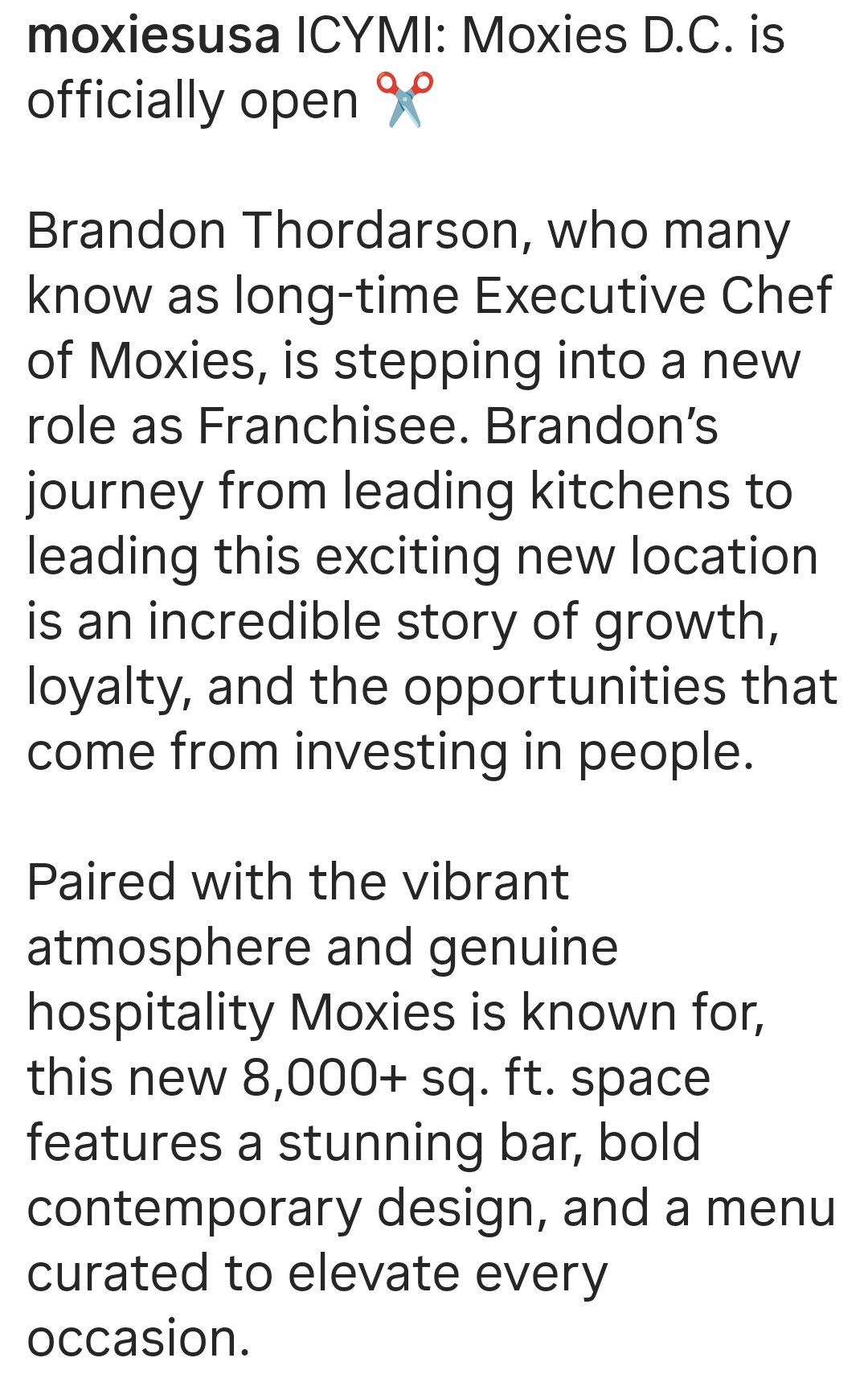 We were comped because it’s a new venture. It is yet to be seen if Moxie’s has a market in DC. The tourist/visitor trade is always hungry for MOR food with plenty of burger/nachos options.