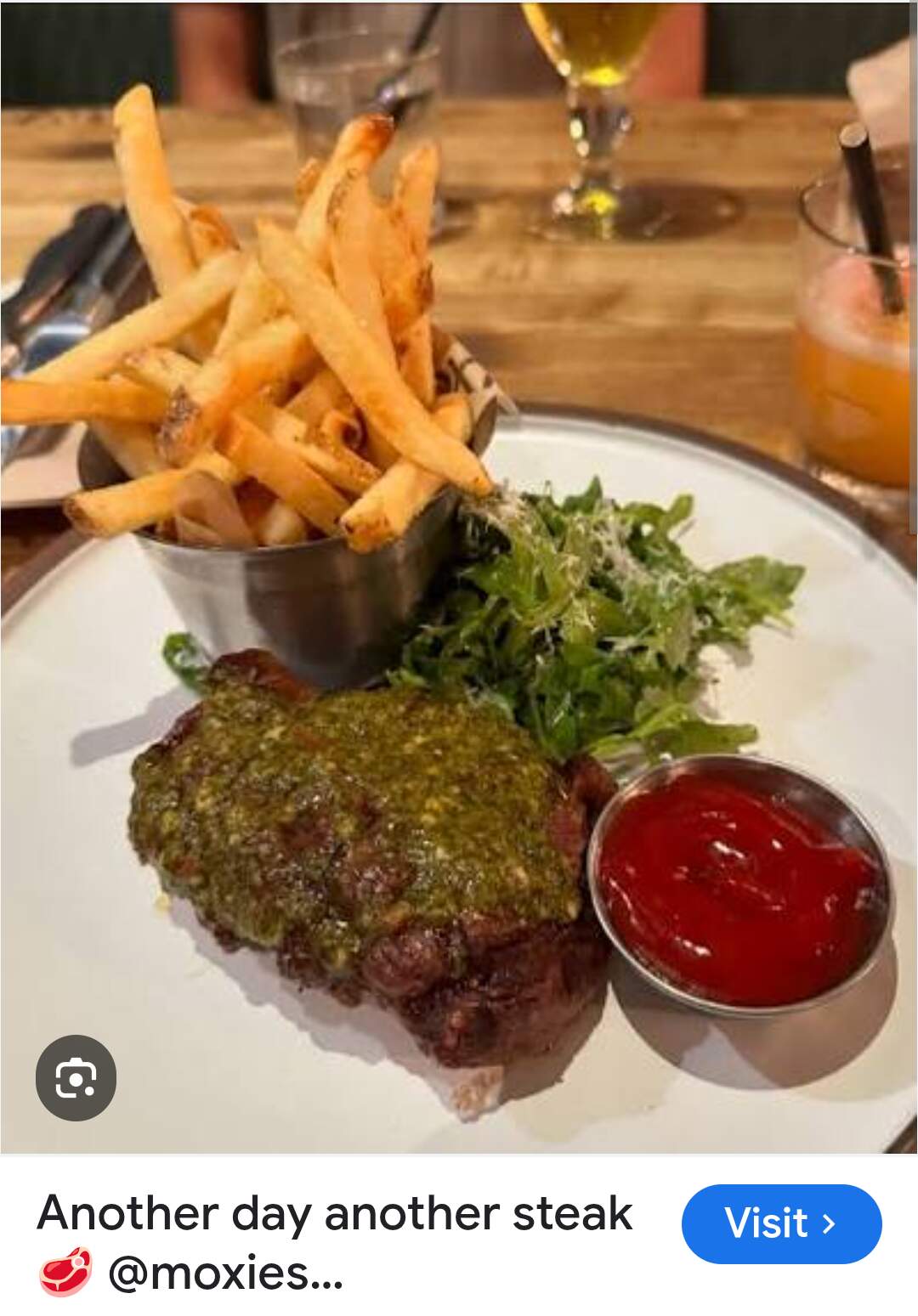 In London, Ontario, with a population of close to 500, 000, we have lost all our independently run steakhouses, so the options for steak beyond a steak frites at a Bistro, would be Moxies, Earl’s, The Keg or Milestones , or maybe a lower rent chain such as Montana’s.
