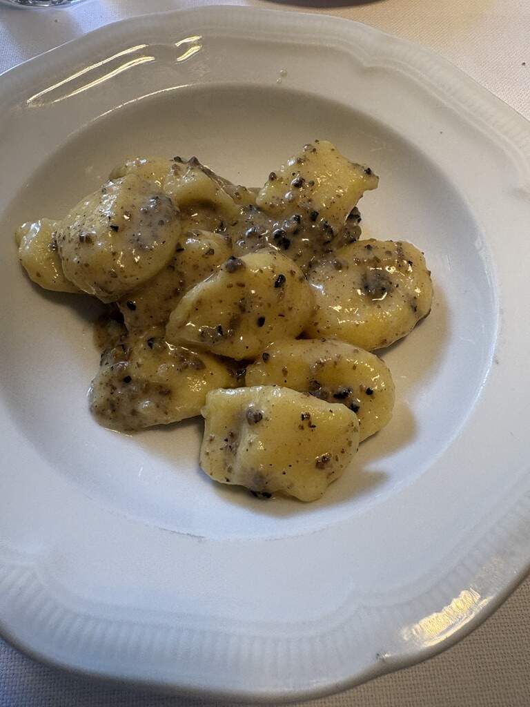Tortellini in a cream and cheese sauce (I think it was at this point of the dinner that we discovered that our wonderful waiter was also our wonderful chef. We got to the kitchen eventually and met his mother who was helping him. Just incredible to me what goes on in unknown kitchens in the world, but particularly this part of Italy that I was fortunate enough to taste!