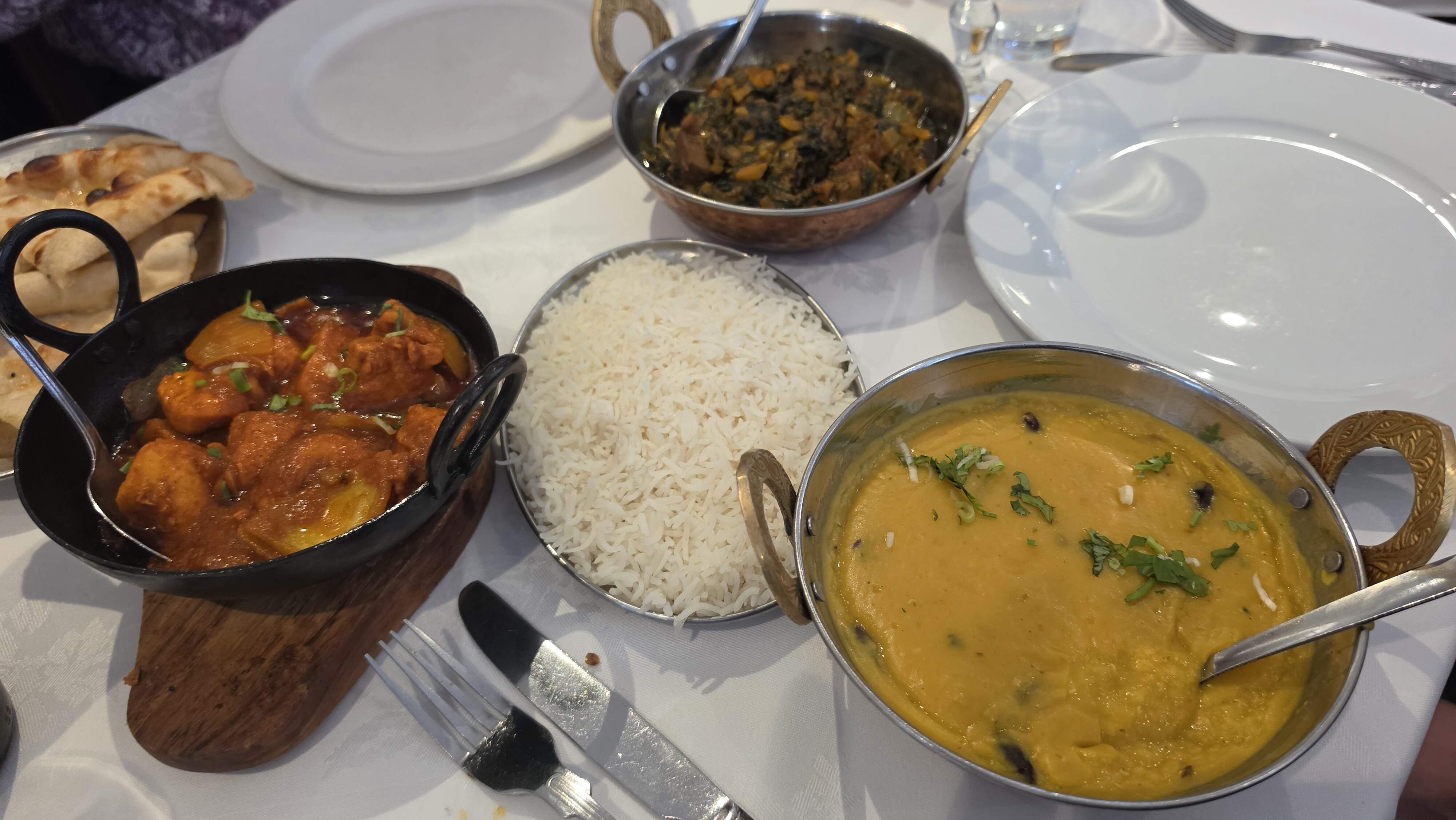 Then we were off to another part of Brick Lane, the Eastern Eye Balti House for Saag, Karahi Chicken and another Dal Baht dish, all of which were good but the Karahi Chicken ruled the roost. So to speak.