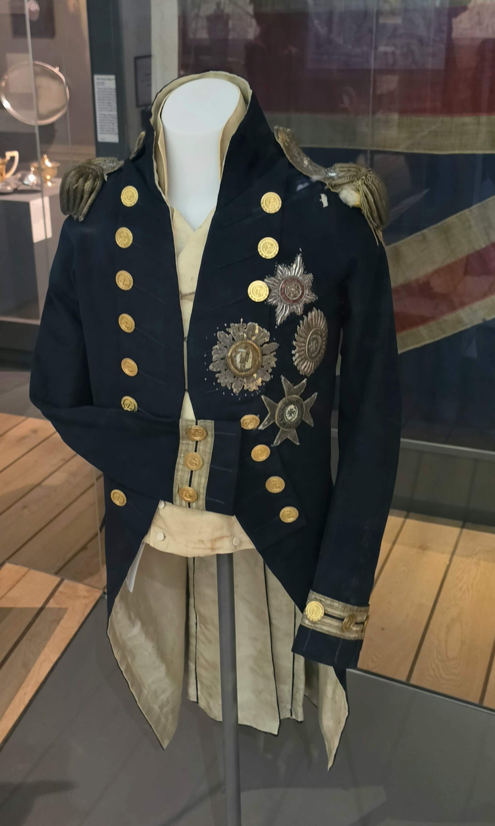 Got off at Greenwich where I saw the uniform Horatio Nelson was shot in. Kind of macabre, but it is history! You can see the tiny little hole where the bullet went into his shoulder…