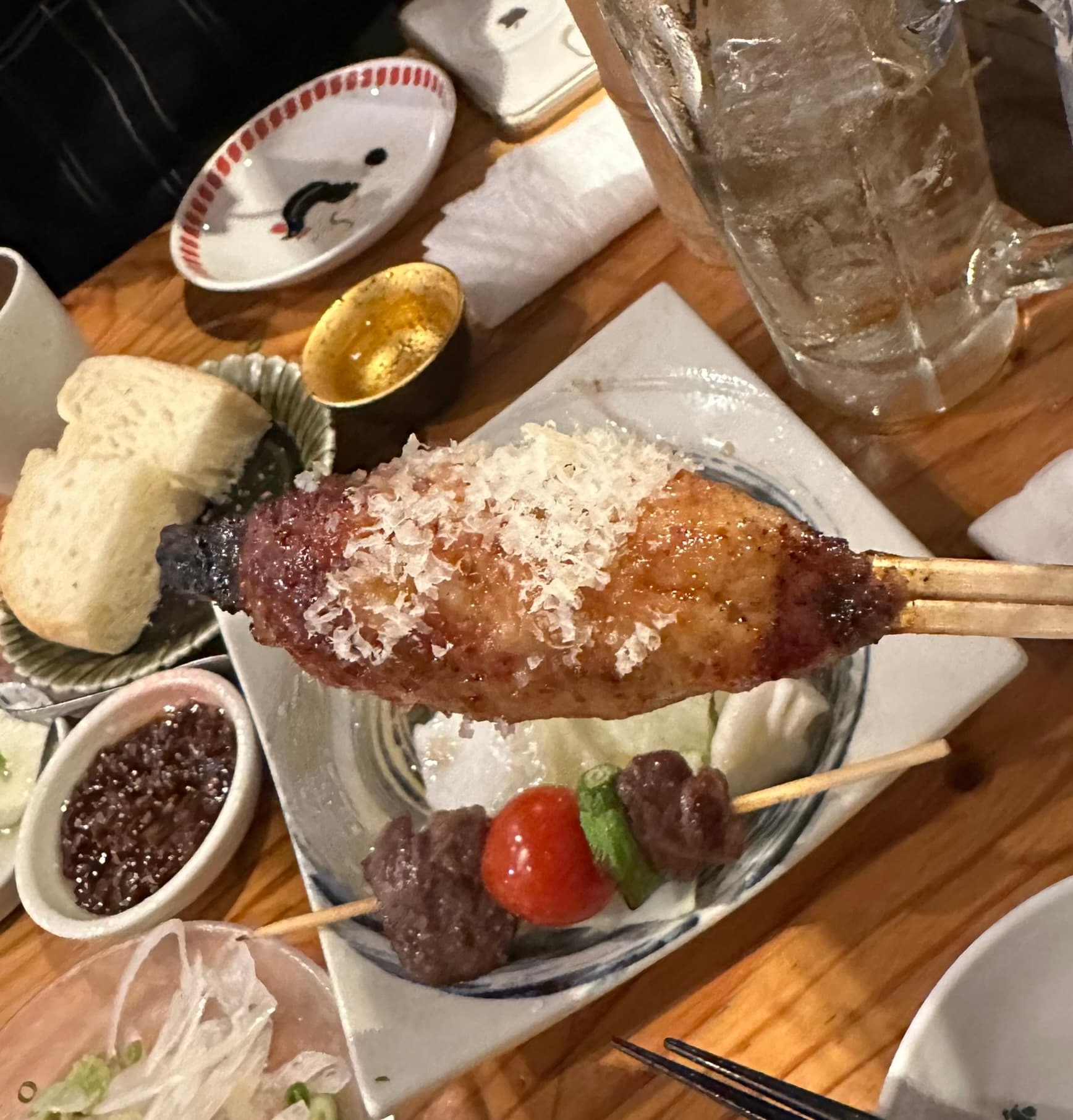 A Garlic encrusted something, Sake’s starting to melt away the memory.