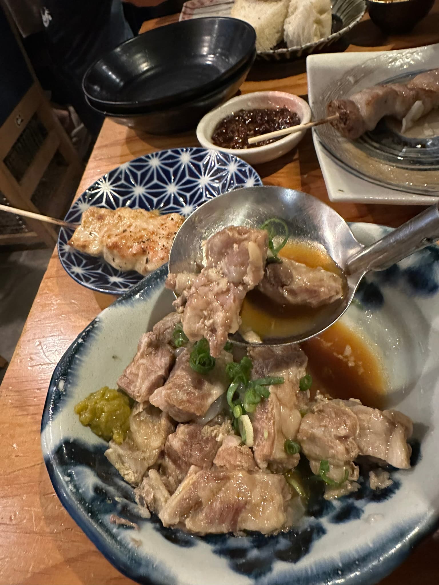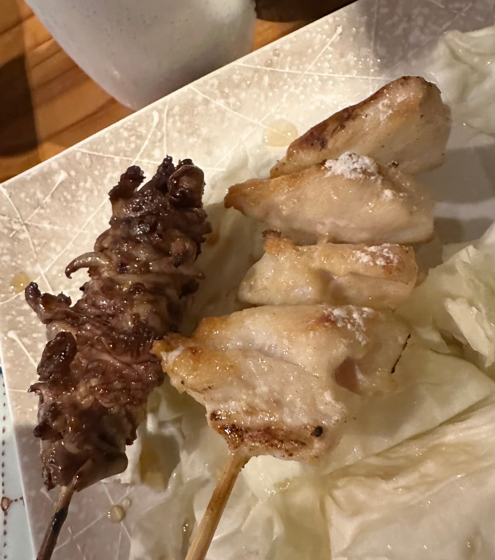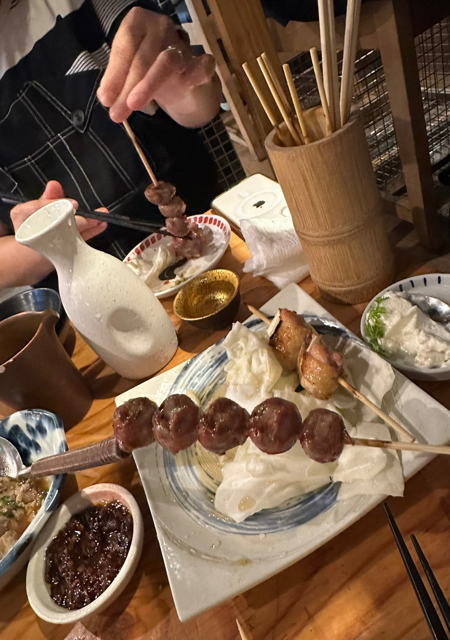 A Yakitori specialist restaurant. The atmosphere was 100% Izakaya. Incoming guests are greeted with a HEARTY Irasshaimase!!! Very enthusiastic staff hustling around like poetry in motion, belting out boisterous chatter and making for a fun convivial time.