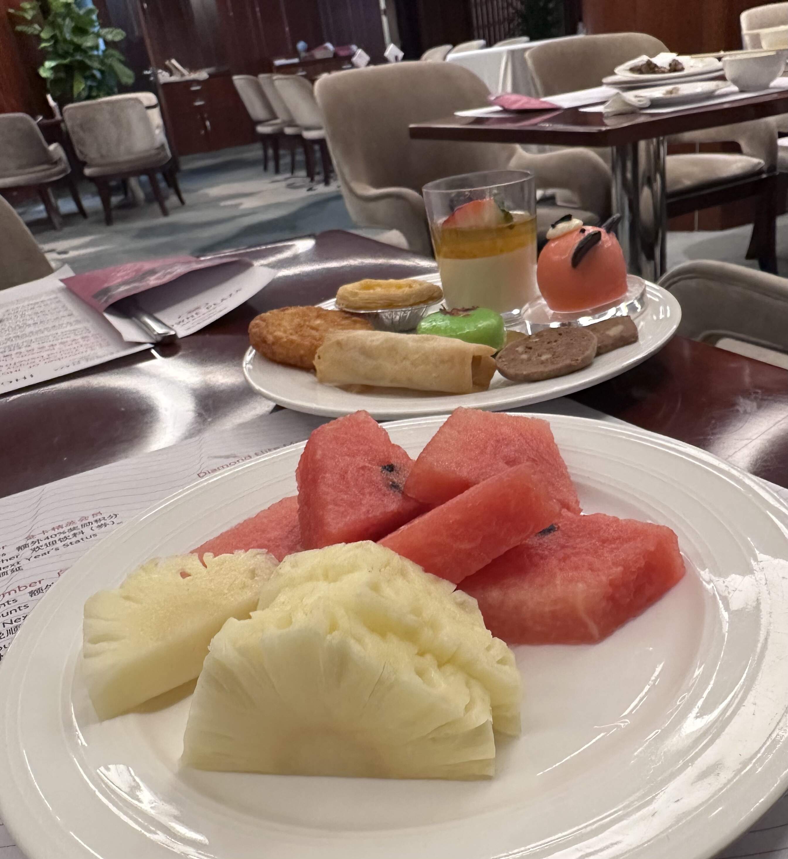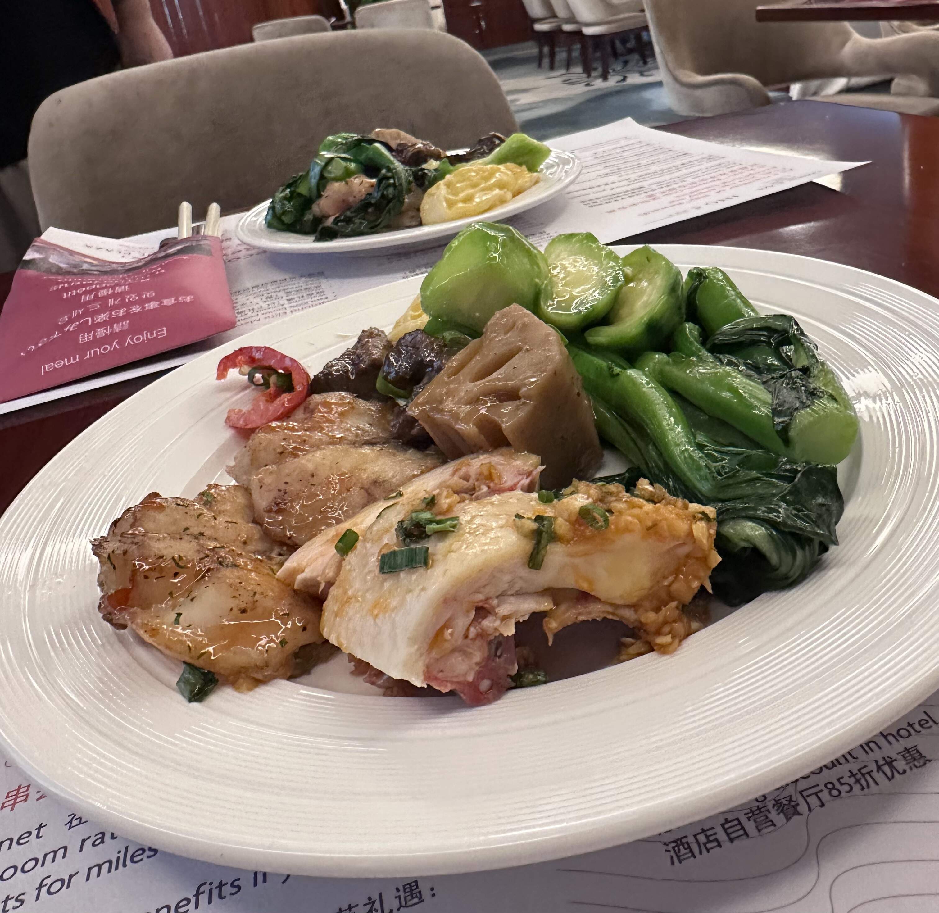 The captain and chef still setting up the chafing dishes as we strolled in. All the food was pristine and fresh from the kitchen.