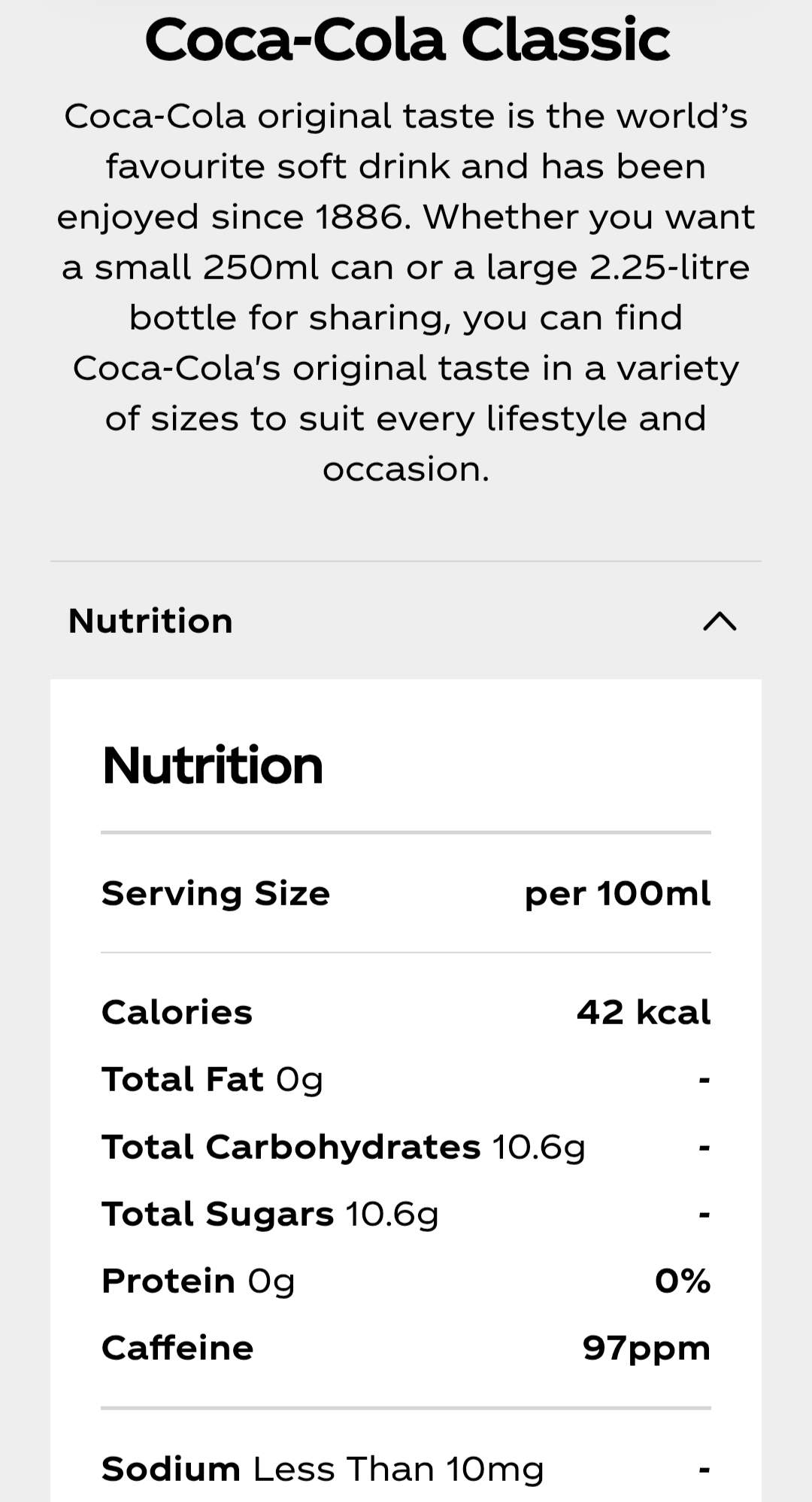 And Coke is 42 kcal per 100 ml: