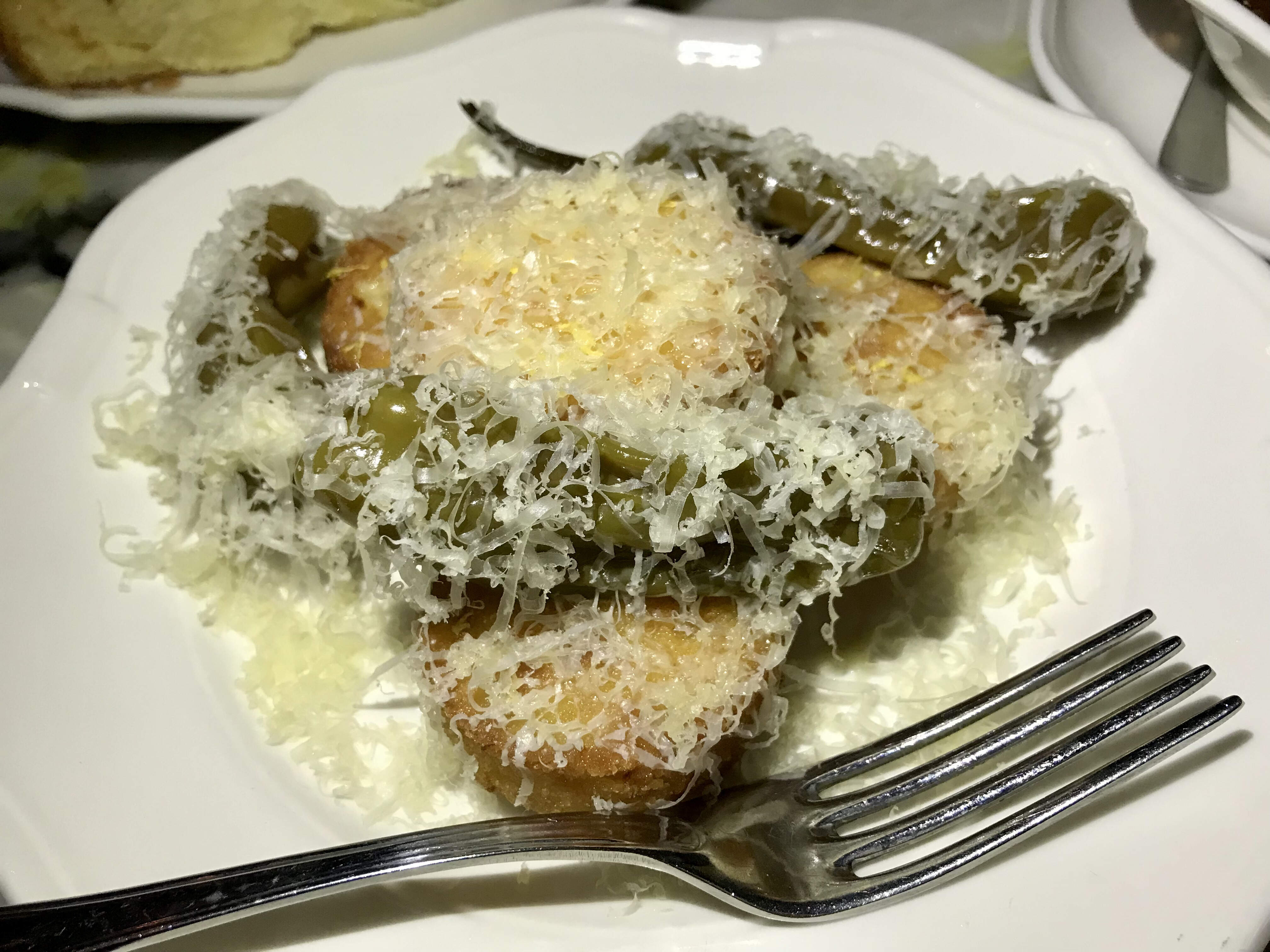 Leek croquettes were crisp and not oily, filled with bechamel and lemon, covered with comté, and accompanied by pickled shishito peppers.