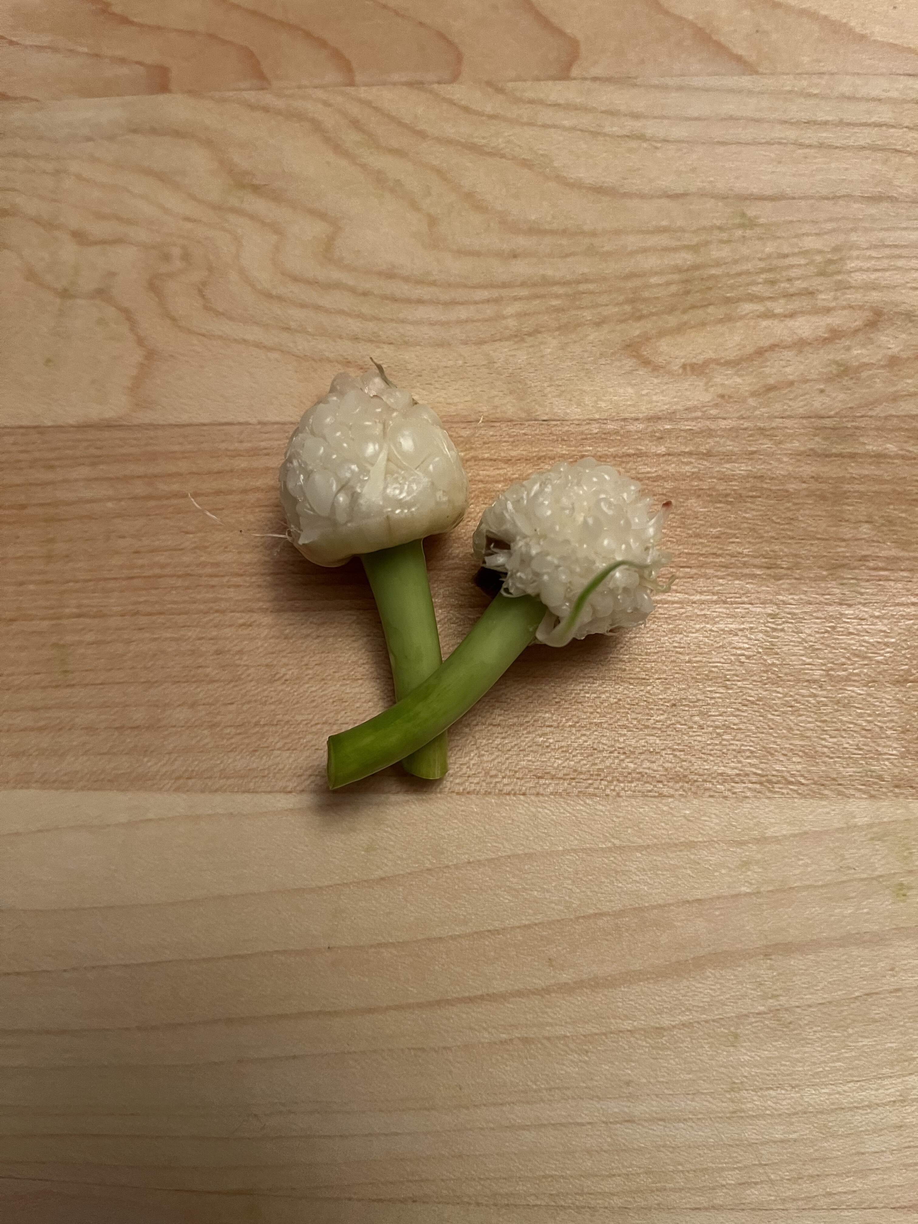 I learned those little kernels are called garlic bubils. I decided to call them garlic pearls.